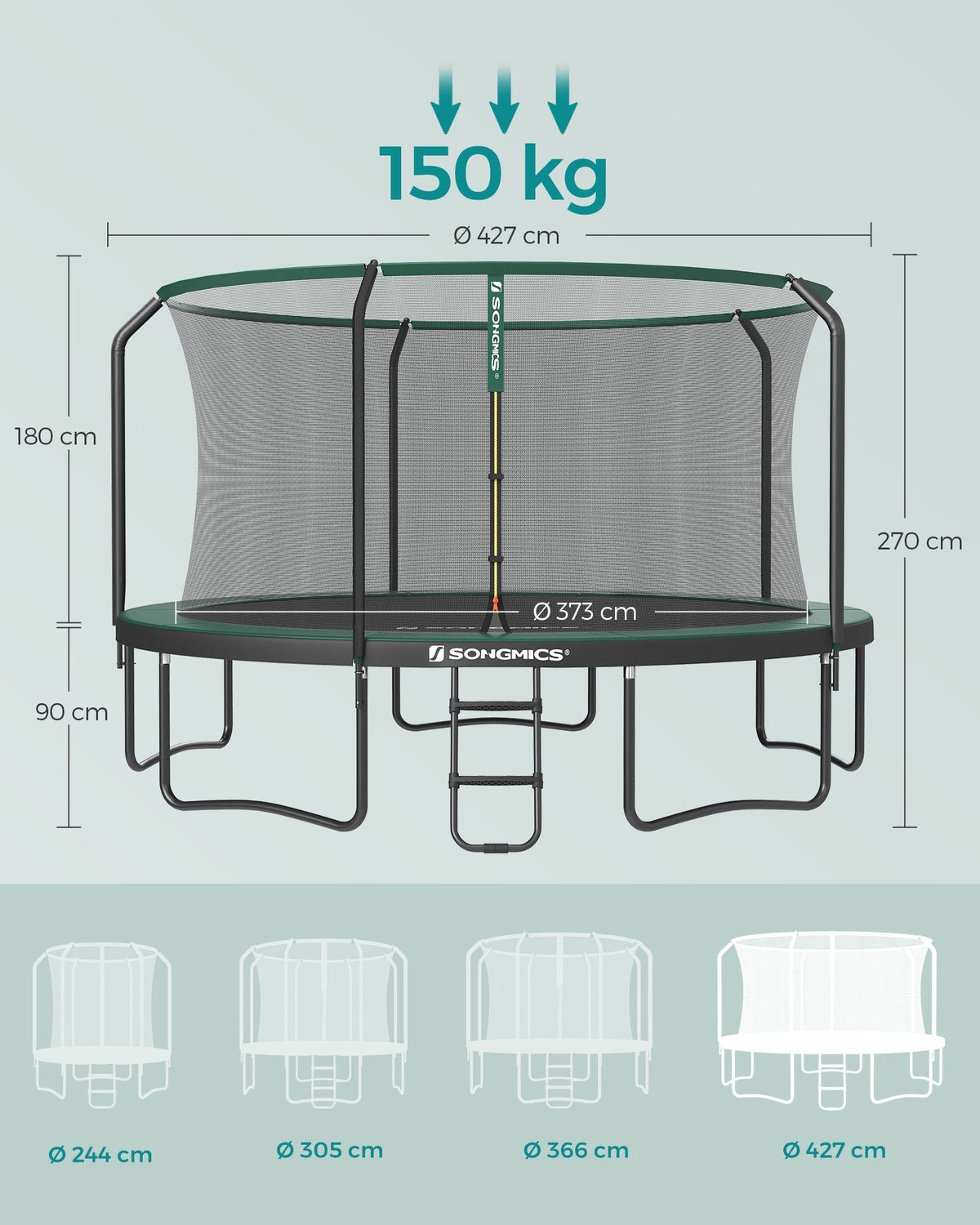 Ronde trampoline met gevoerd frame 366 cm