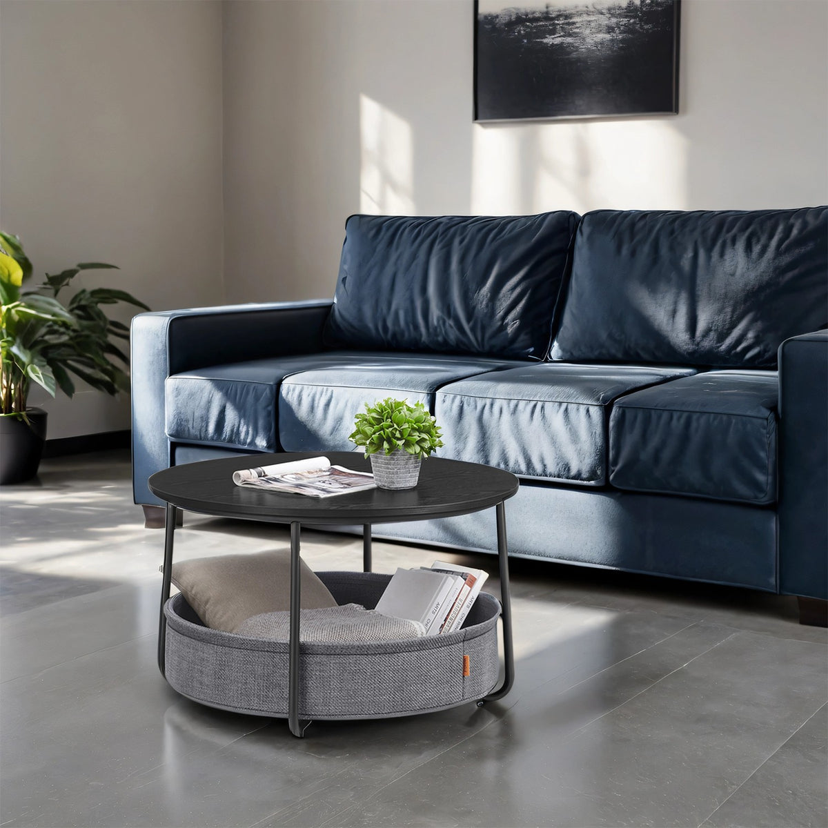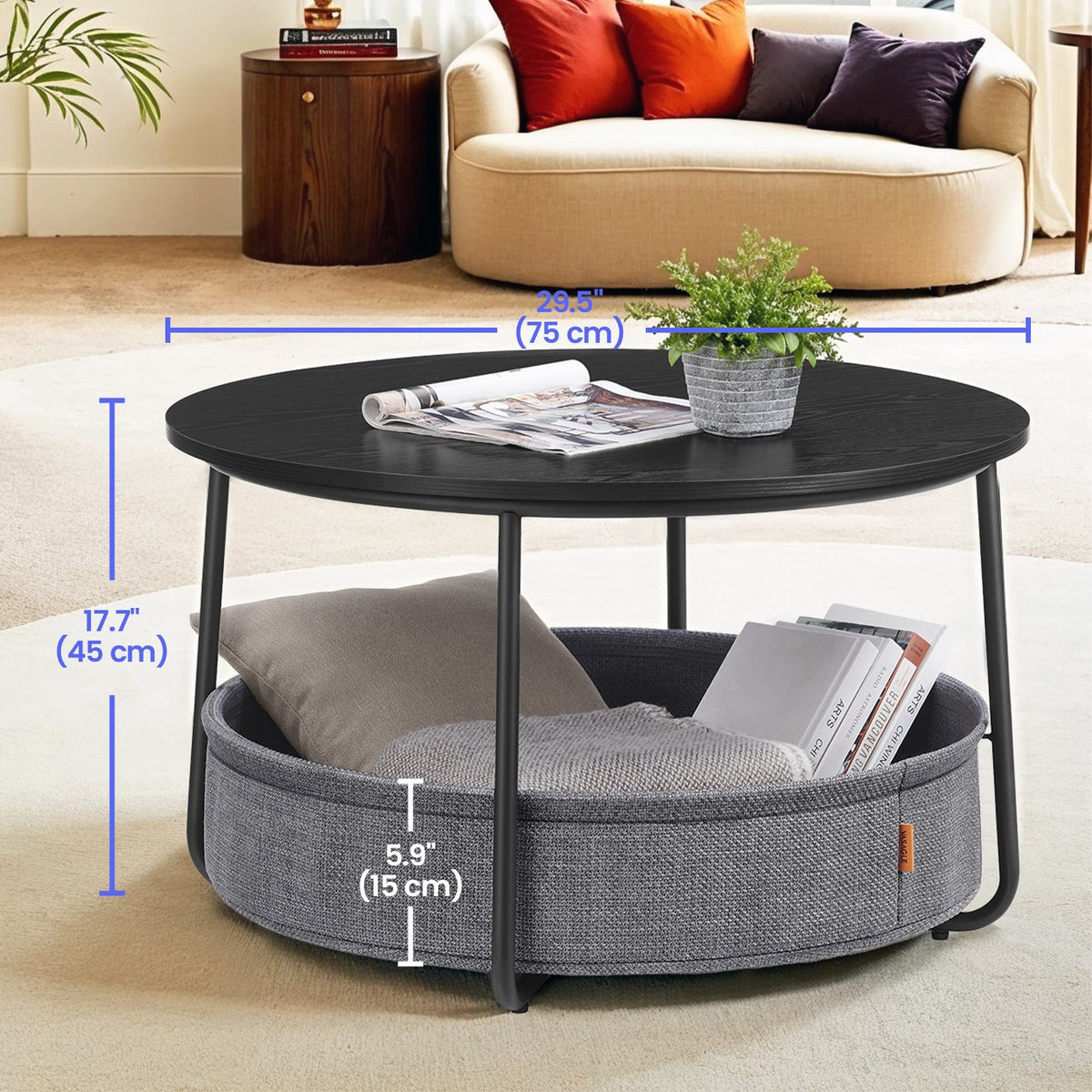 Salontafel met mand van inktzwarte en leigrijze stof 75 cm - LCTB35244B56