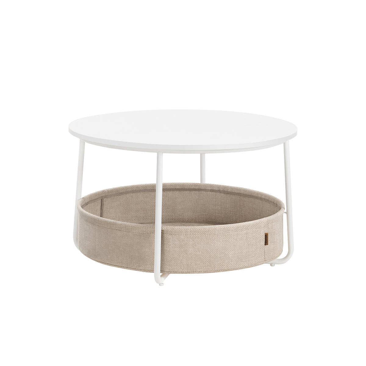 Salontafel met mand van mat wit-kameelbruine stof 75 cm - B34LCT244W10