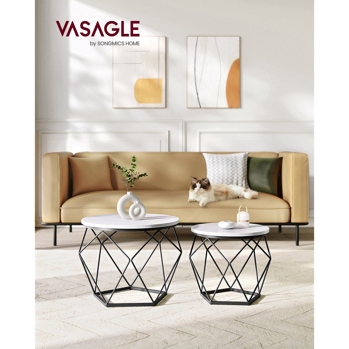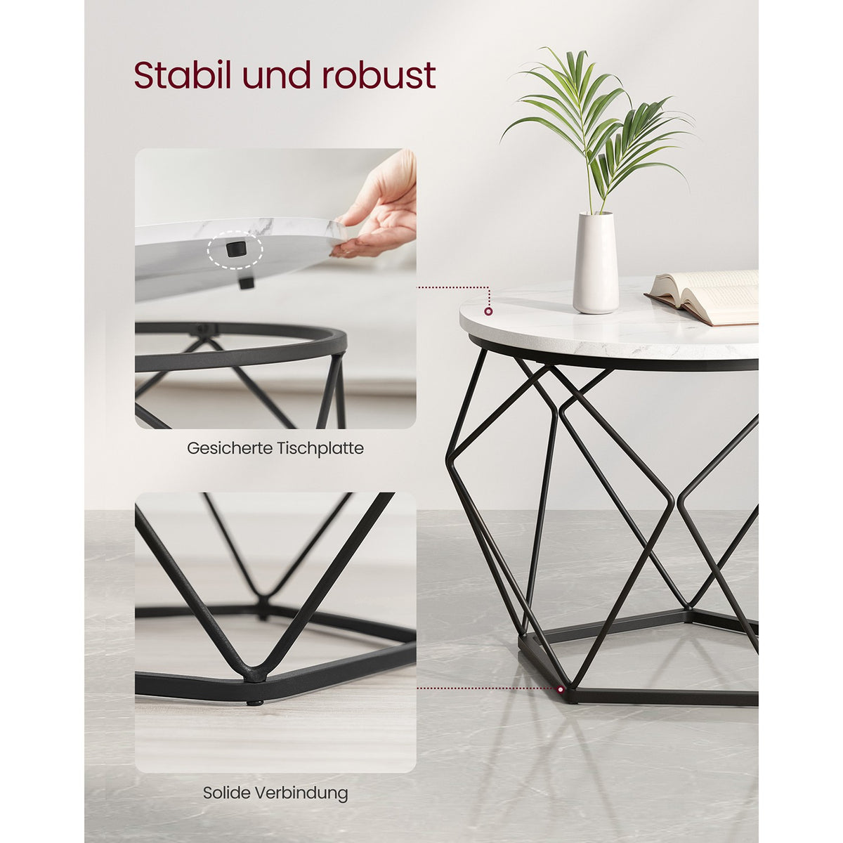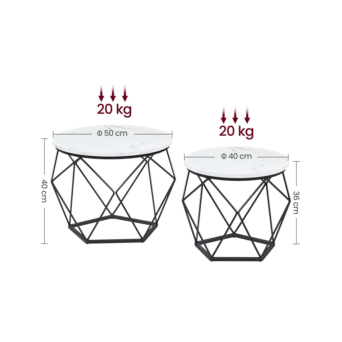 Salontafelset wit-zwart 2-delig 50 x 40 cm