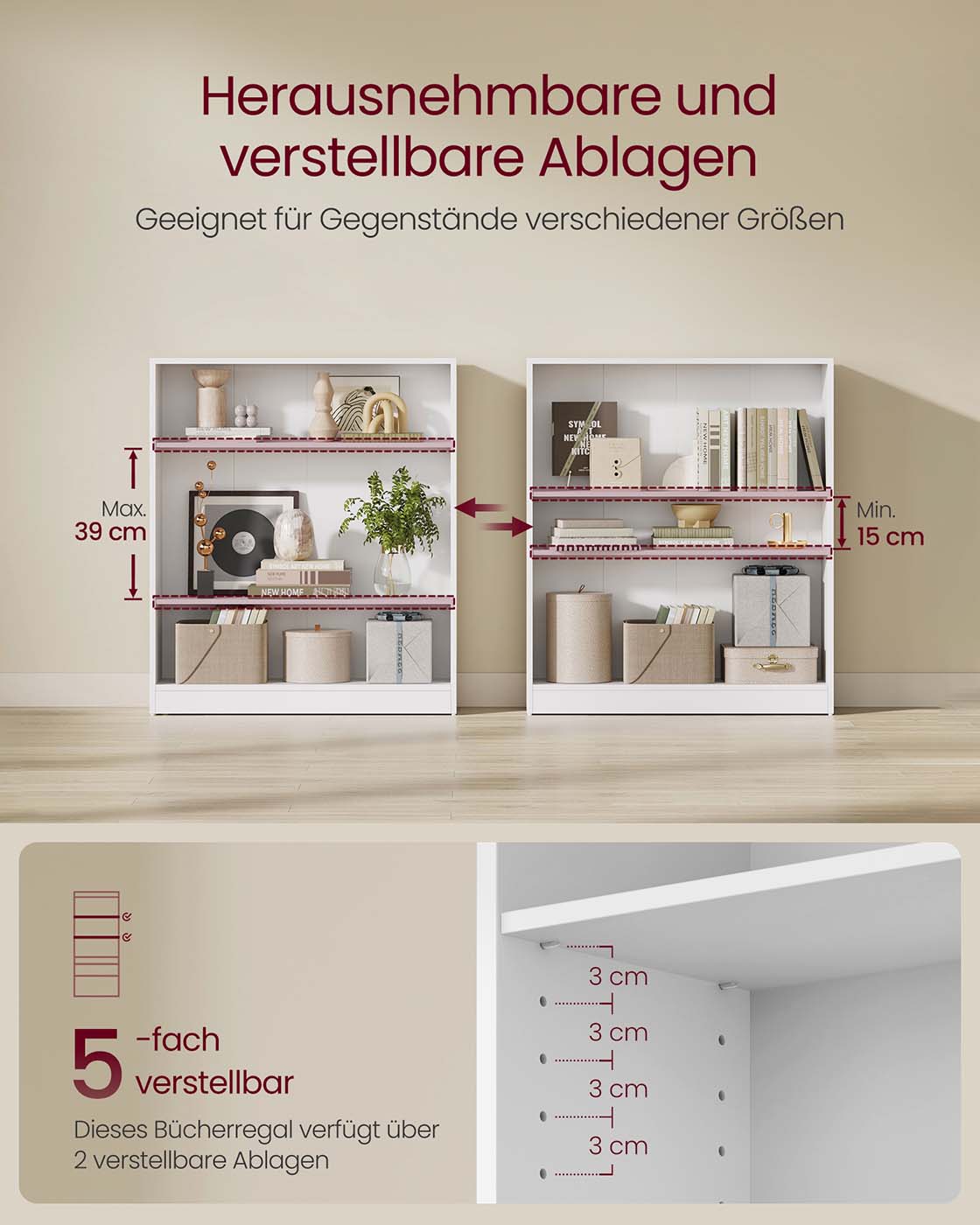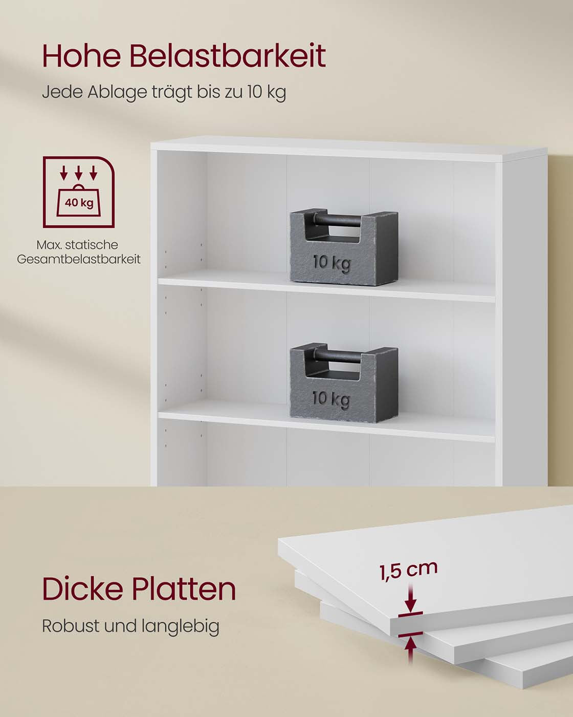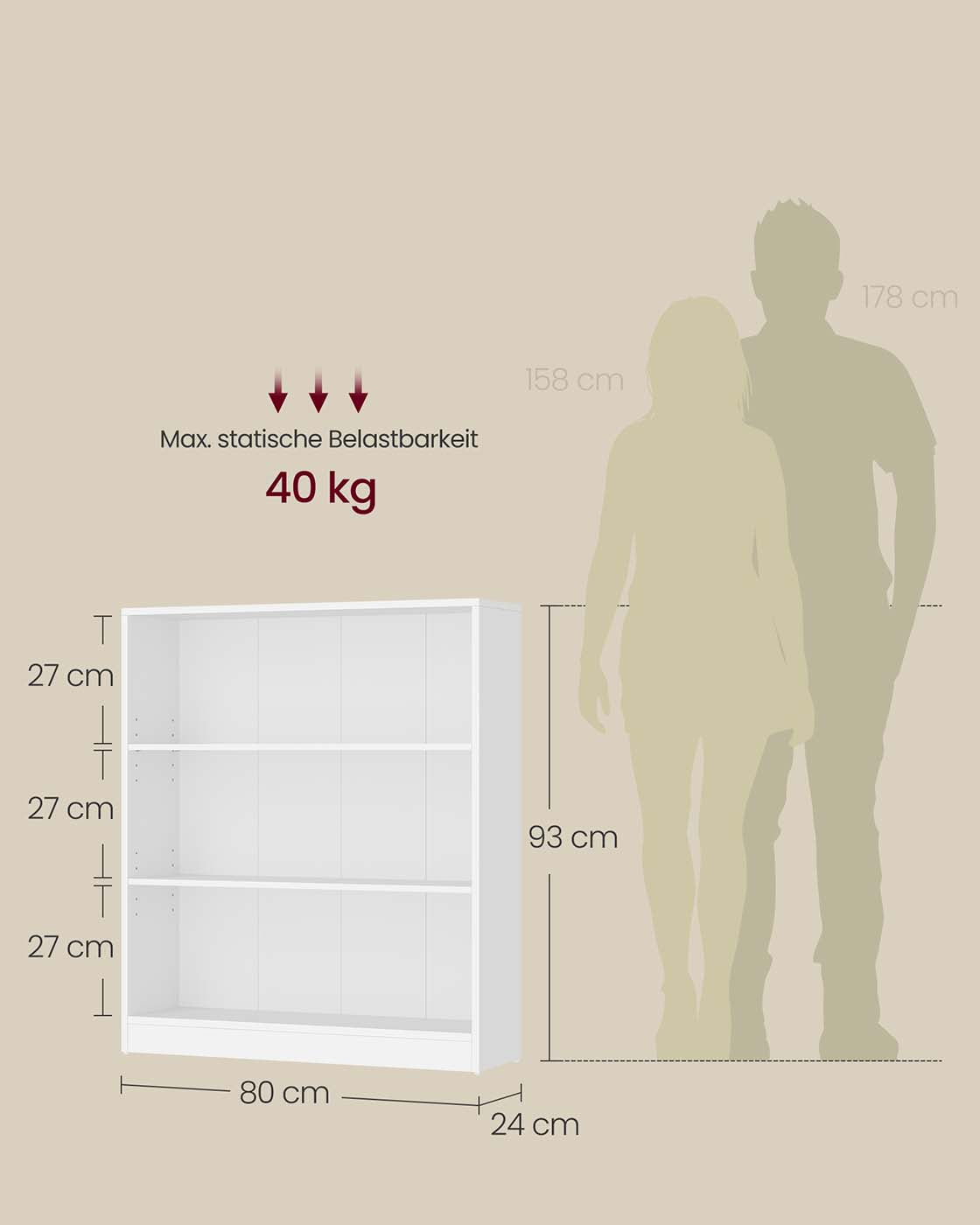 Scandinavische boekenkast met 3 niveaus 24 x 80 x 93 cm