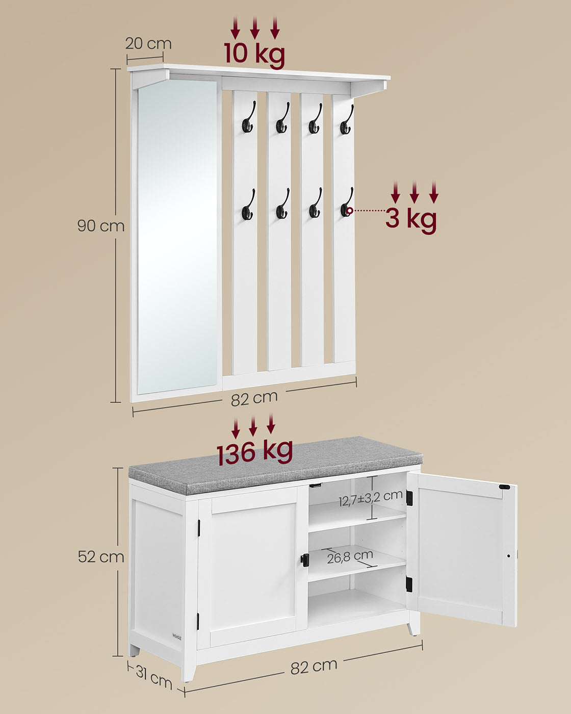 Schoenenbank wandkastset met 8 dubbele haken 82 cm breed