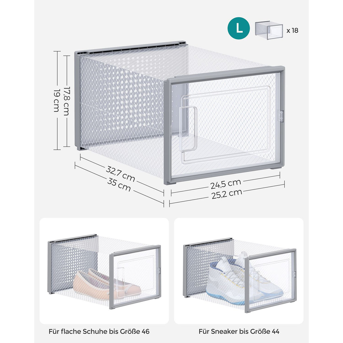 Schoenendozen set van 18 transparant-grijs 2 x 19 cm - LSP007G18