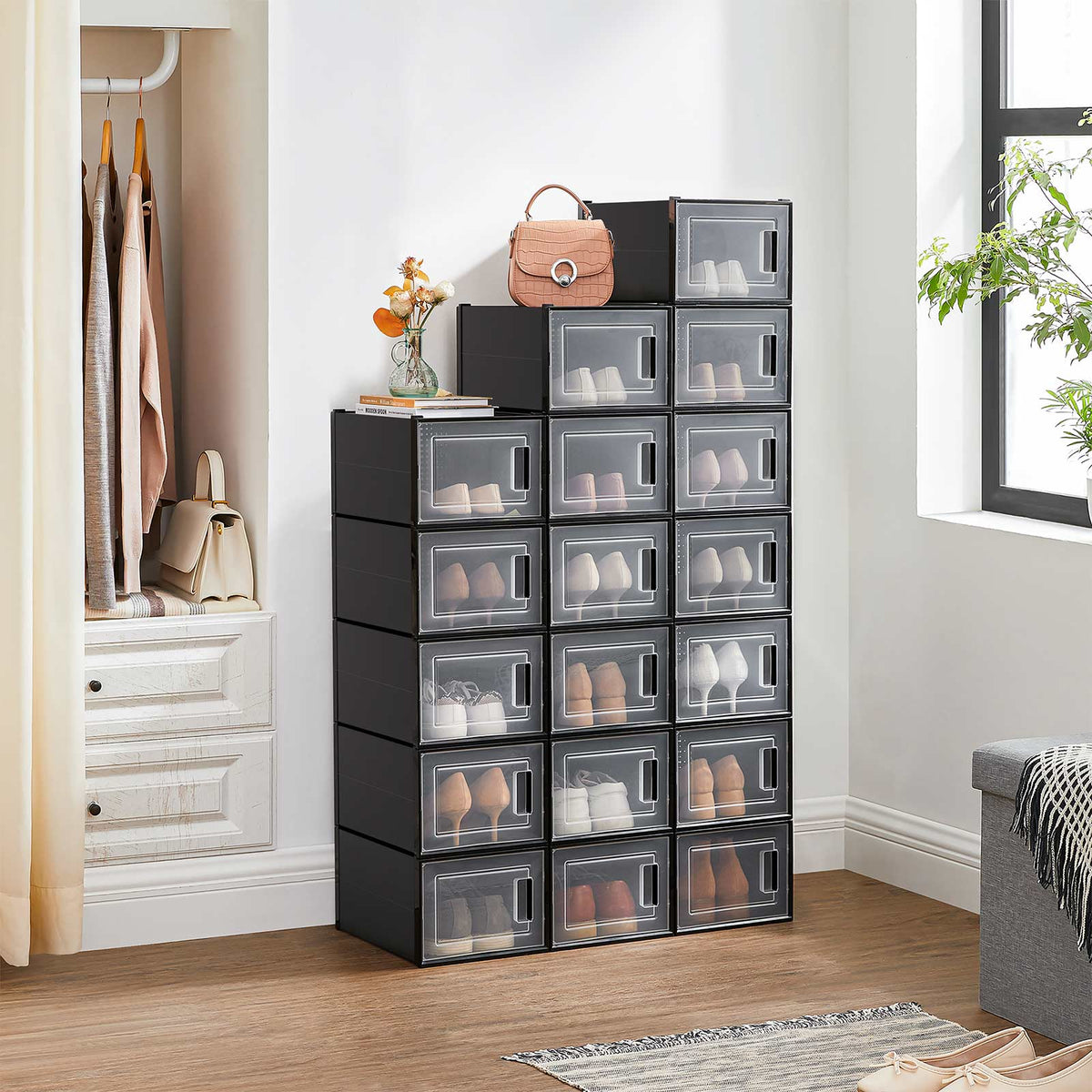 Schoenendozen set van 18 zwart 35 x 25 x 18,5 cm