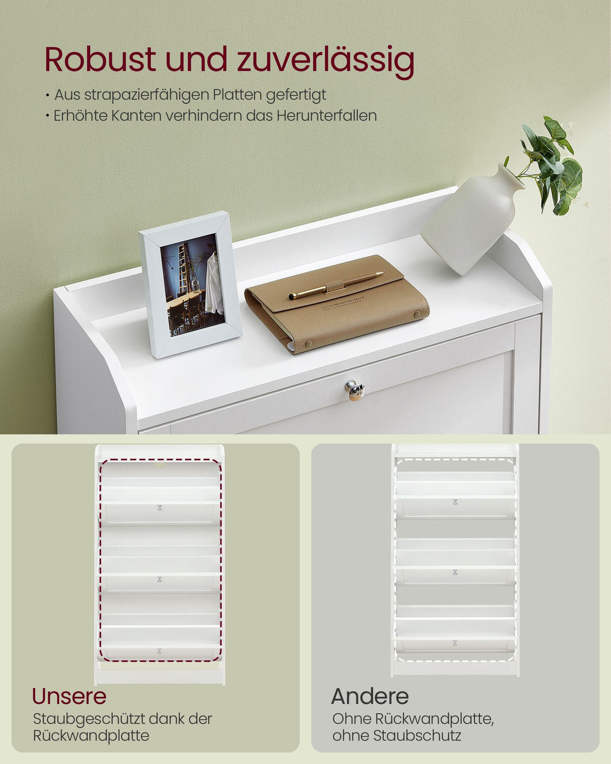 Schoenenkast met 3 deuren voor maximaal 18 paar schoenen, wolkenwit 24 x 60 x 108 cm