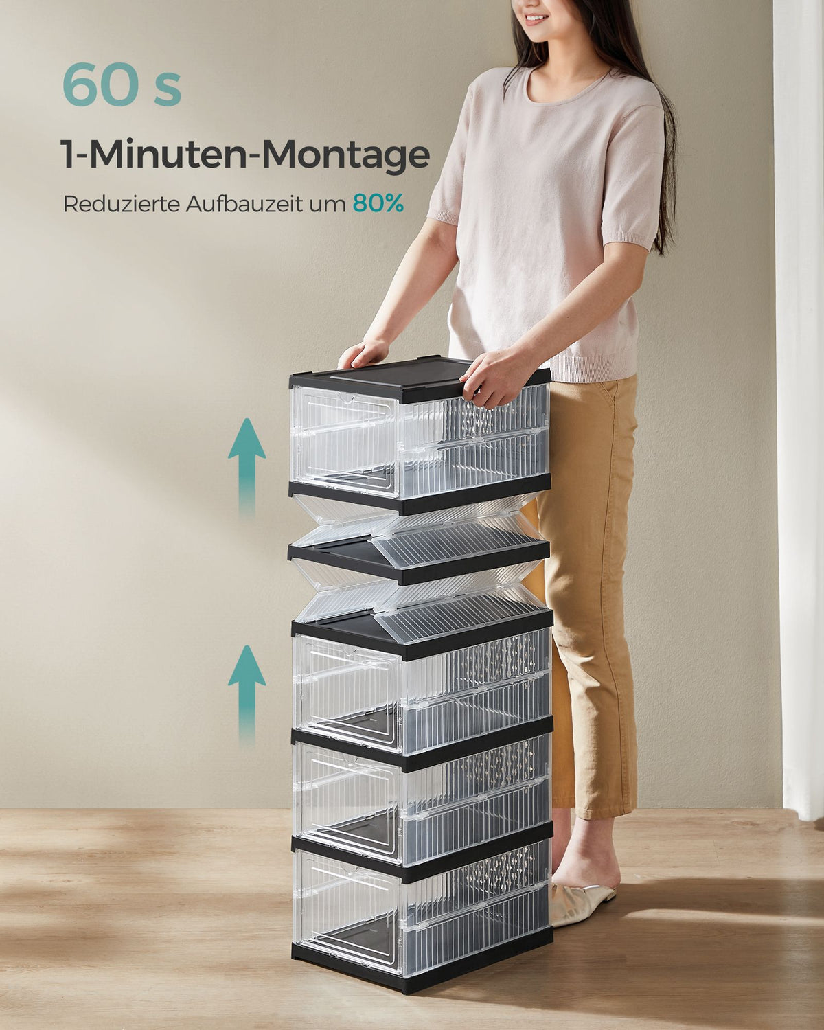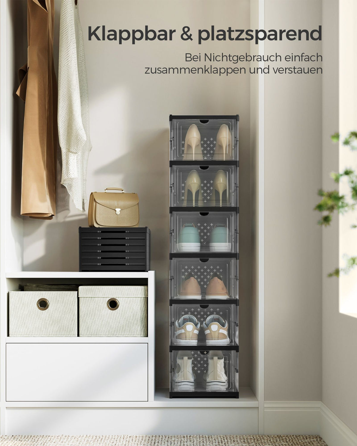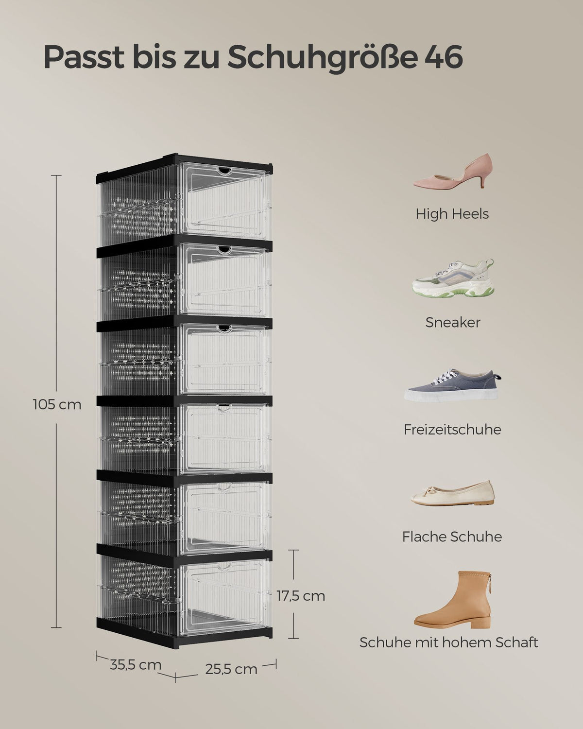 Schoenenkast met 6 schoenendozen transparant-inktzwart 5 x 105 cm
