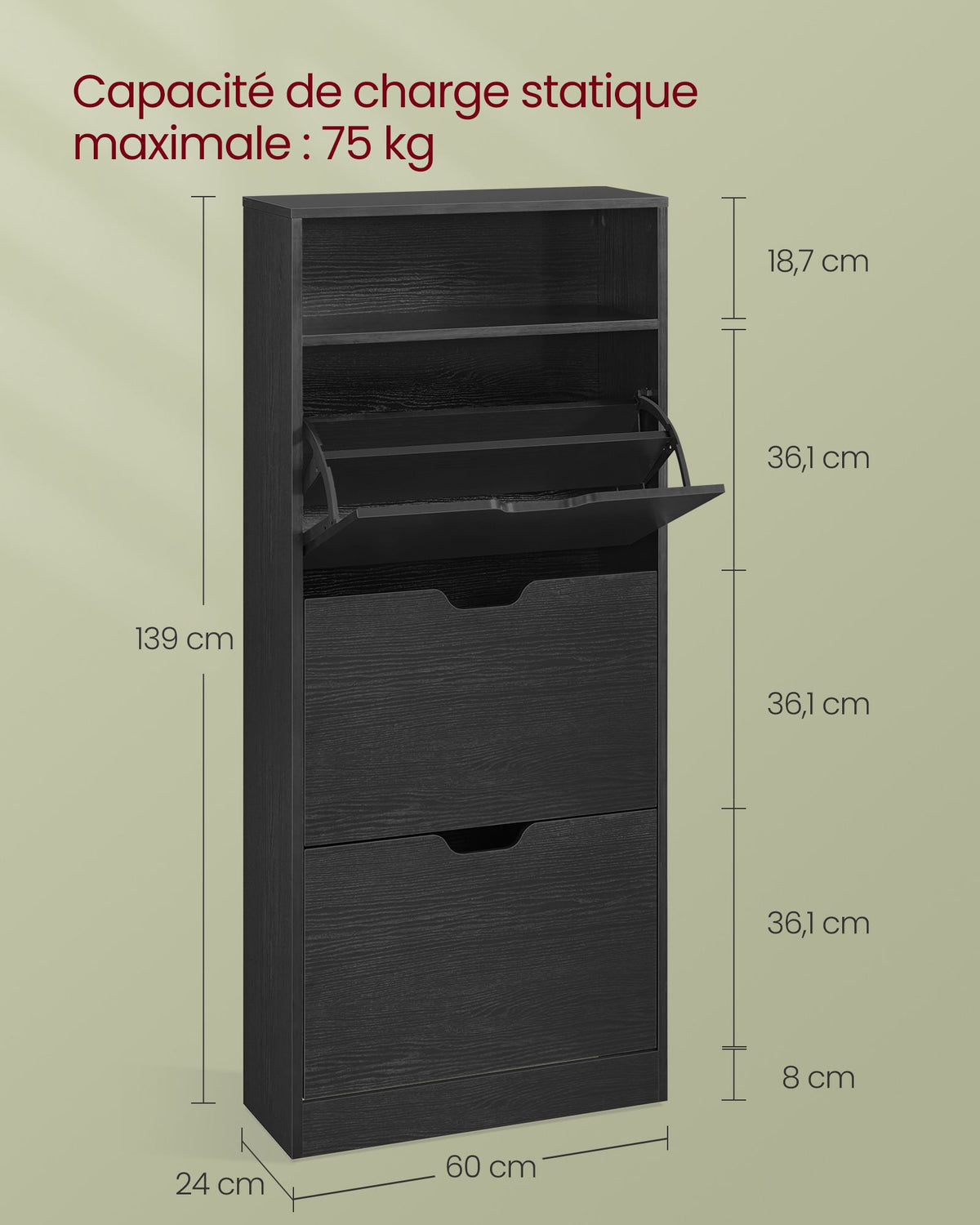 Schoenenkast open vak verstelbaar ebbenhout zwart 24 x 60 x 139 cm