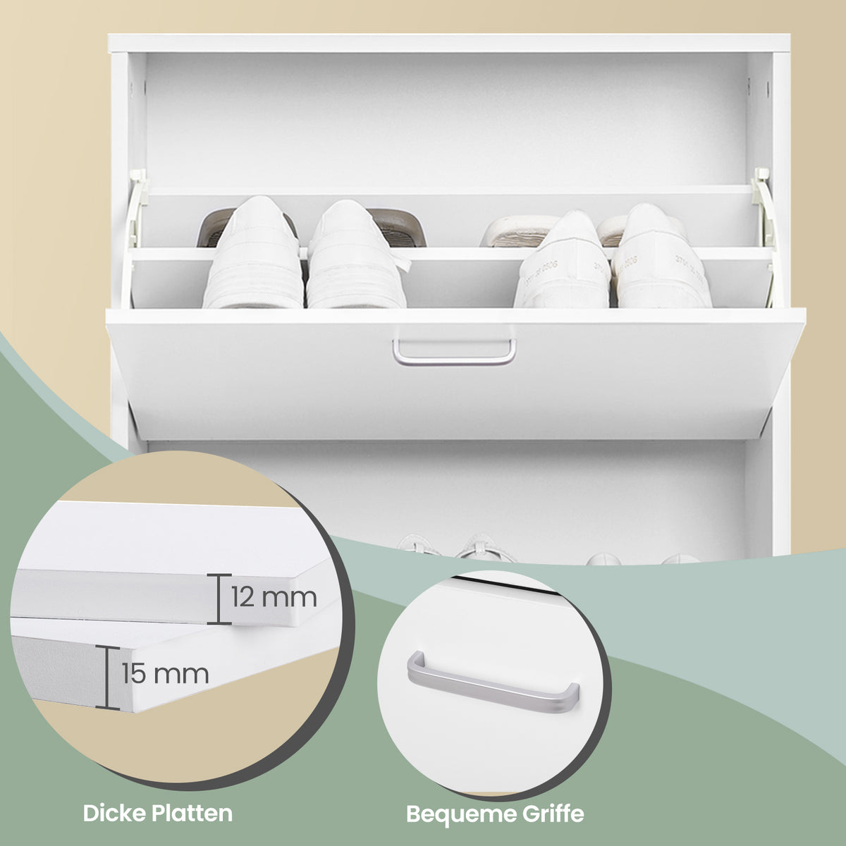 Schoenenkast, schoenenkieper met 2 kleppen, verstelbare tussenschotten 5 x 24 cm - LBCB3502WT