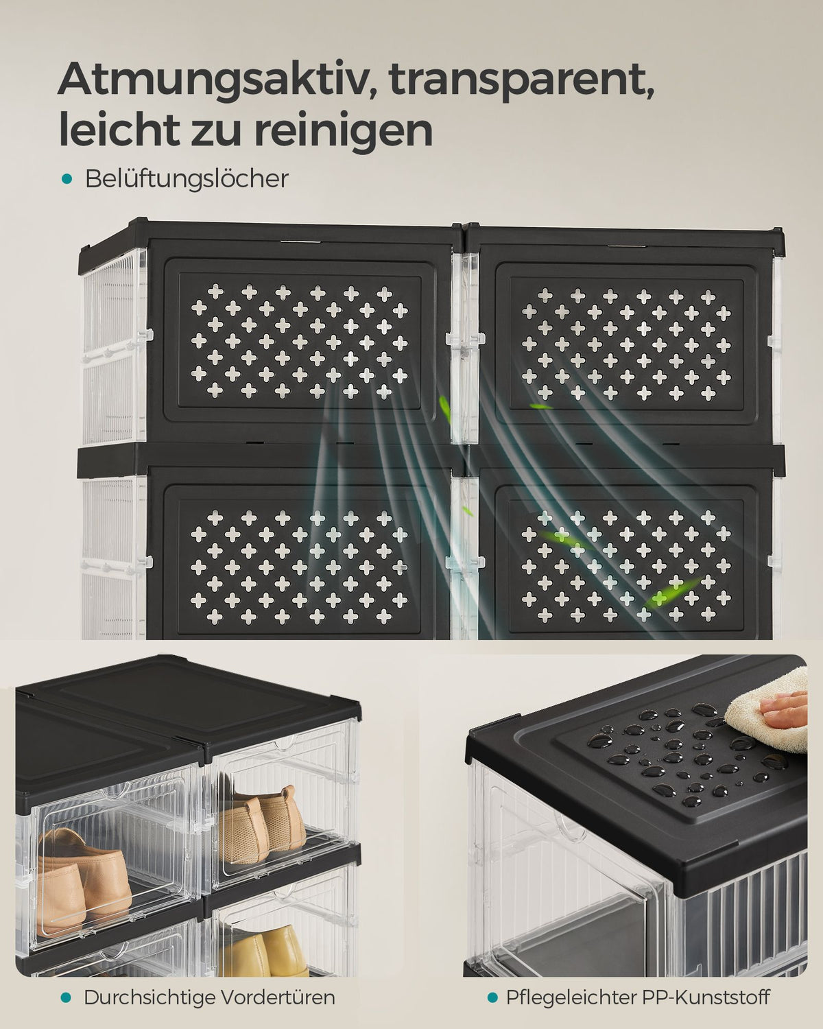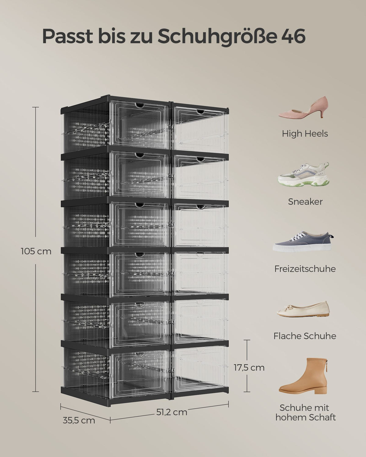 Schoenenkast set van 2 met schoenendozen transparant-inkt zwart 5 x 105 cm