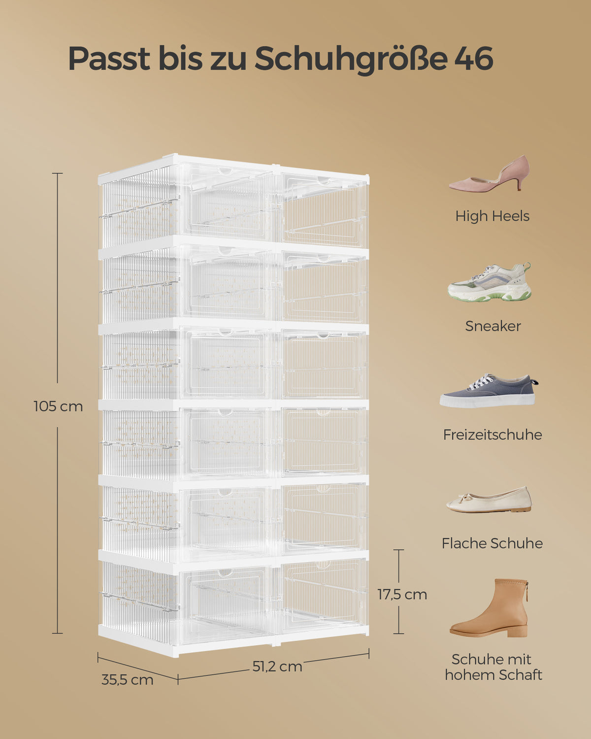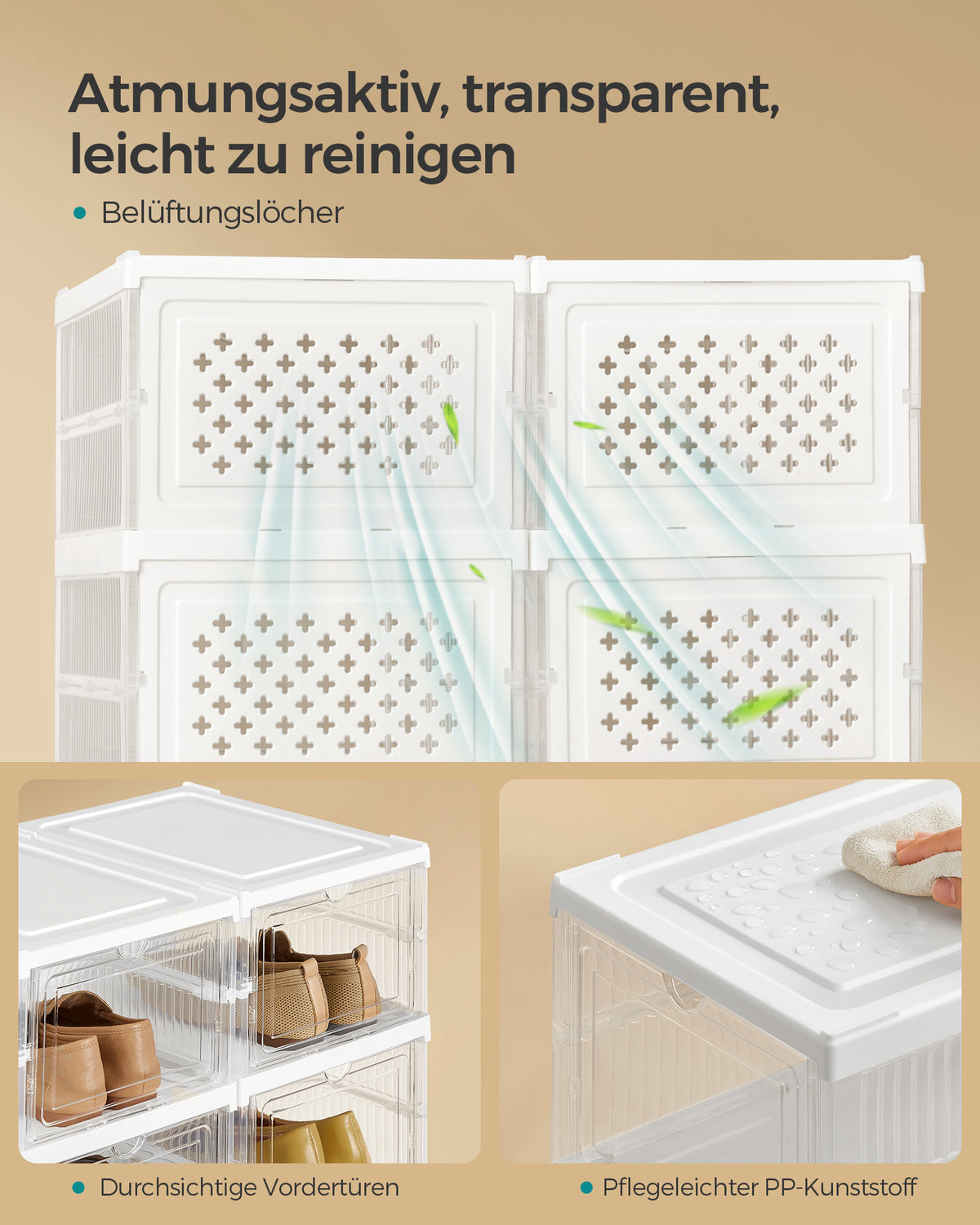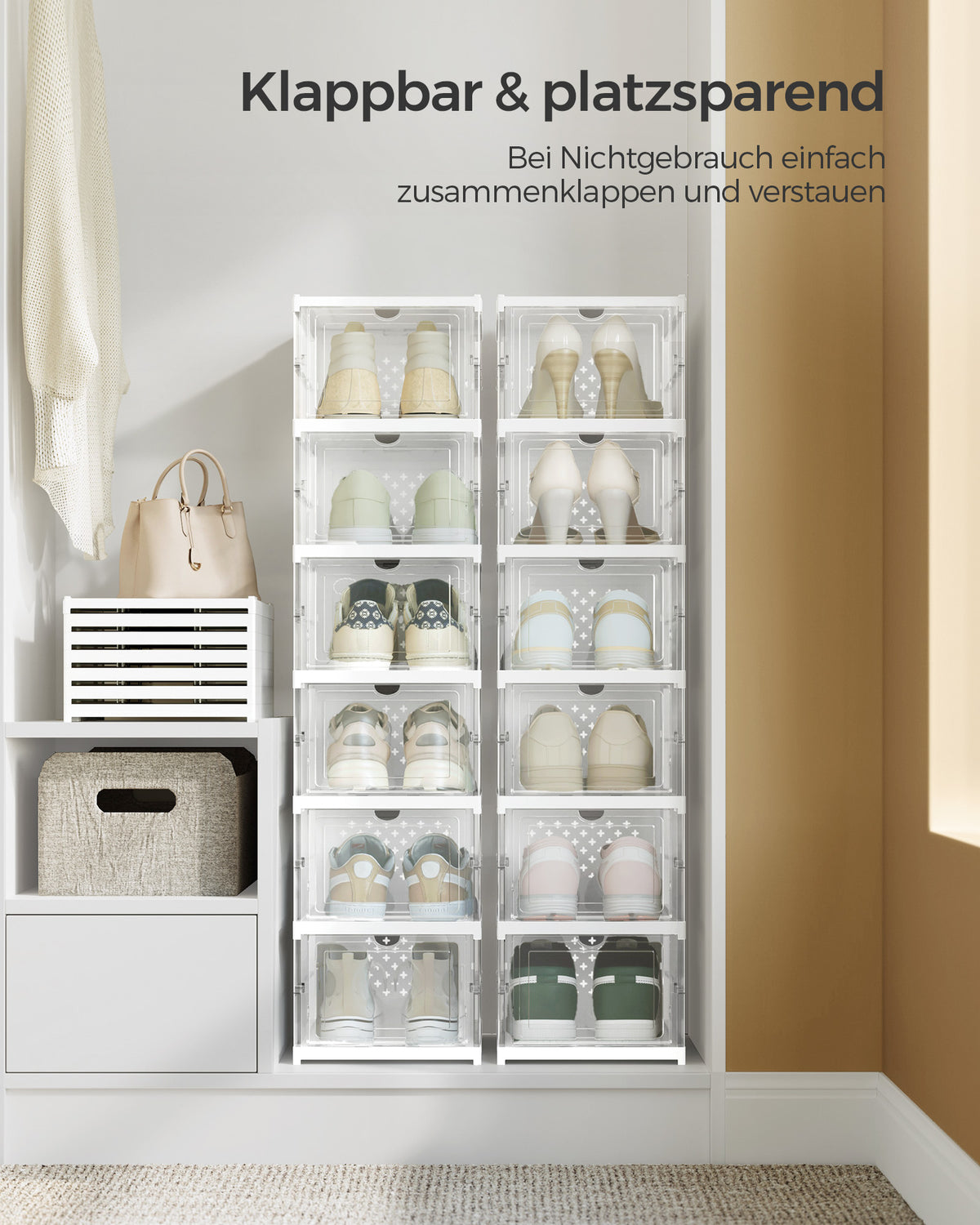 Schoenenkast set van 2 met schoenendozen transparant-wolkwit 5 x 105 cm