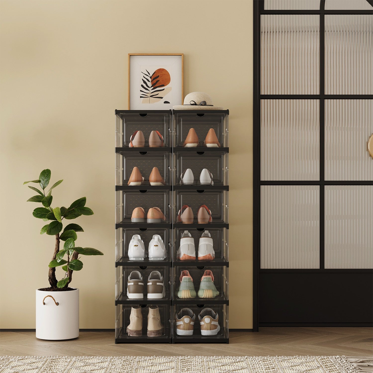Schoenenkastset van 2, met 12 schoenendozen, geïntegreerde schoenenorganizer 5 x 105 cm - LSPB35206B01