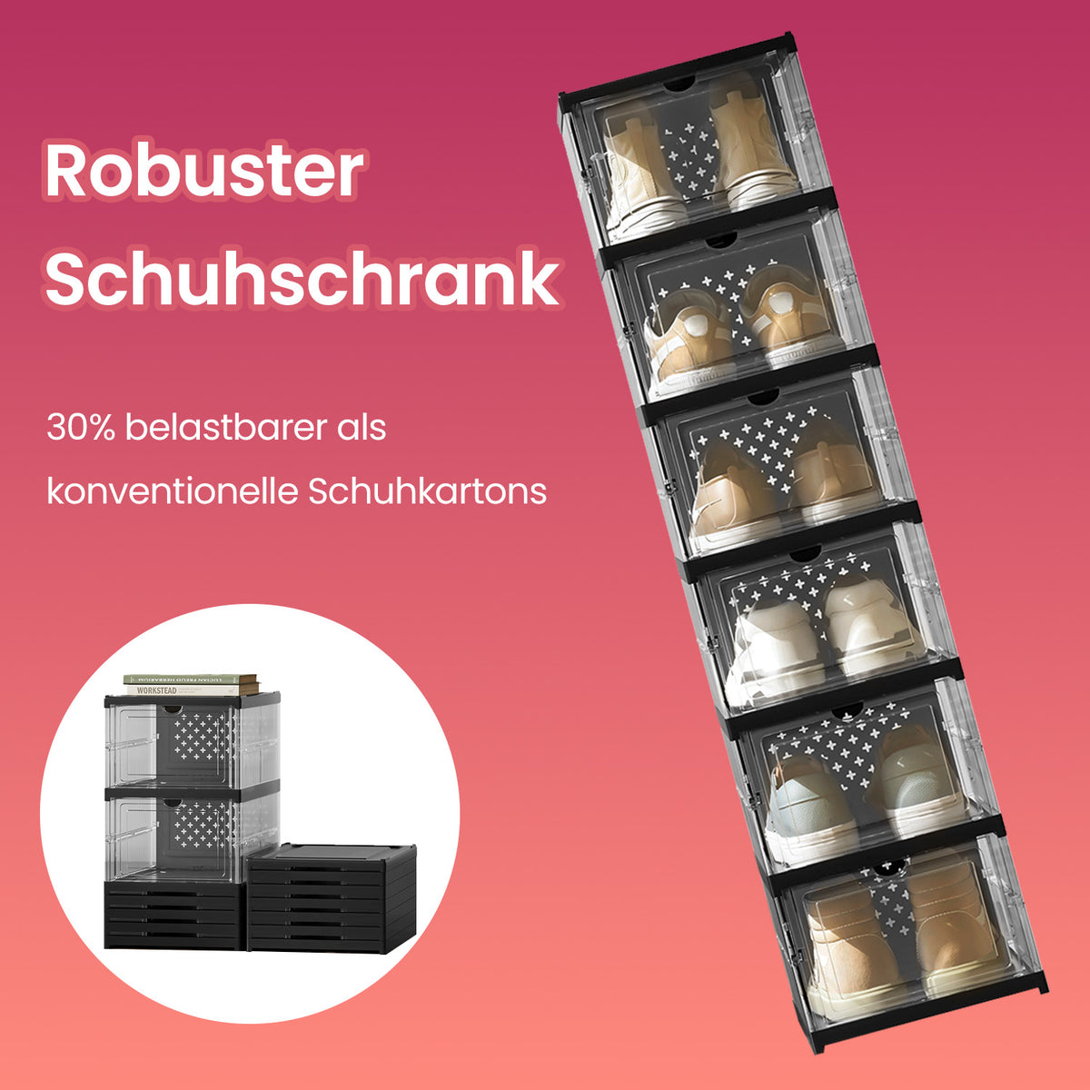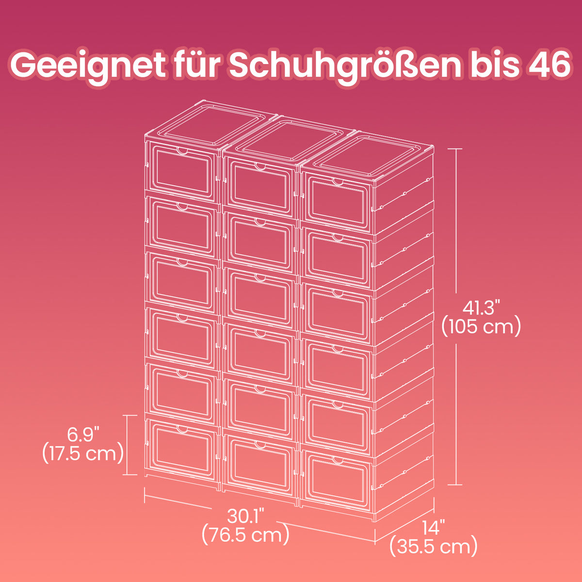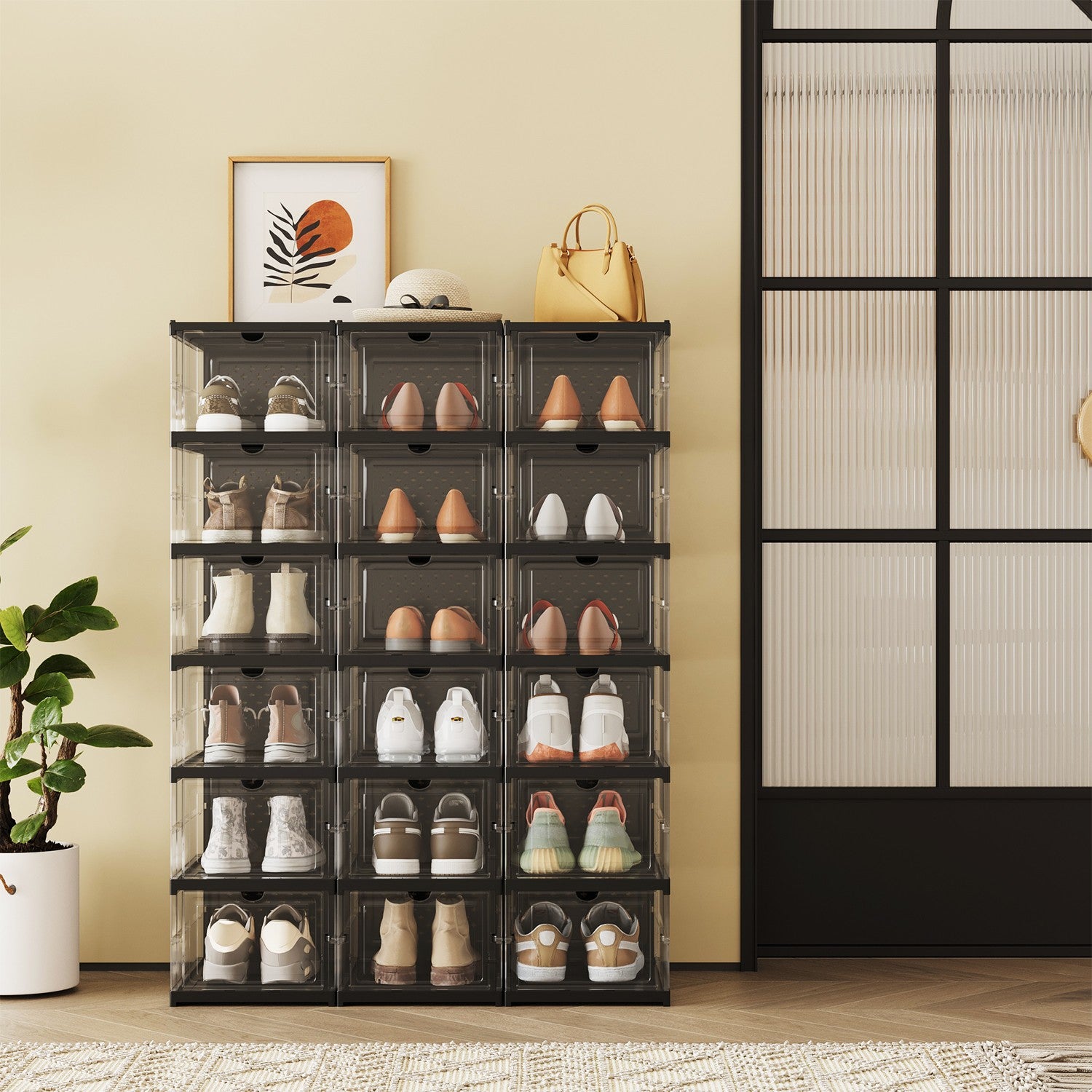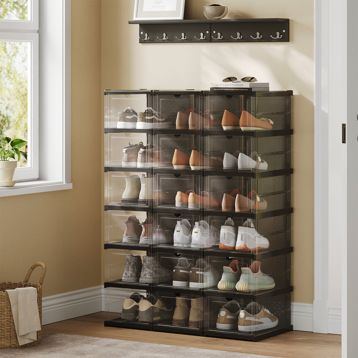 Schoenenkastset van 3, met 18 schoenendozen, geïntegreerde schoenenorganizer 5 x 105 cm - LSPB35207B01