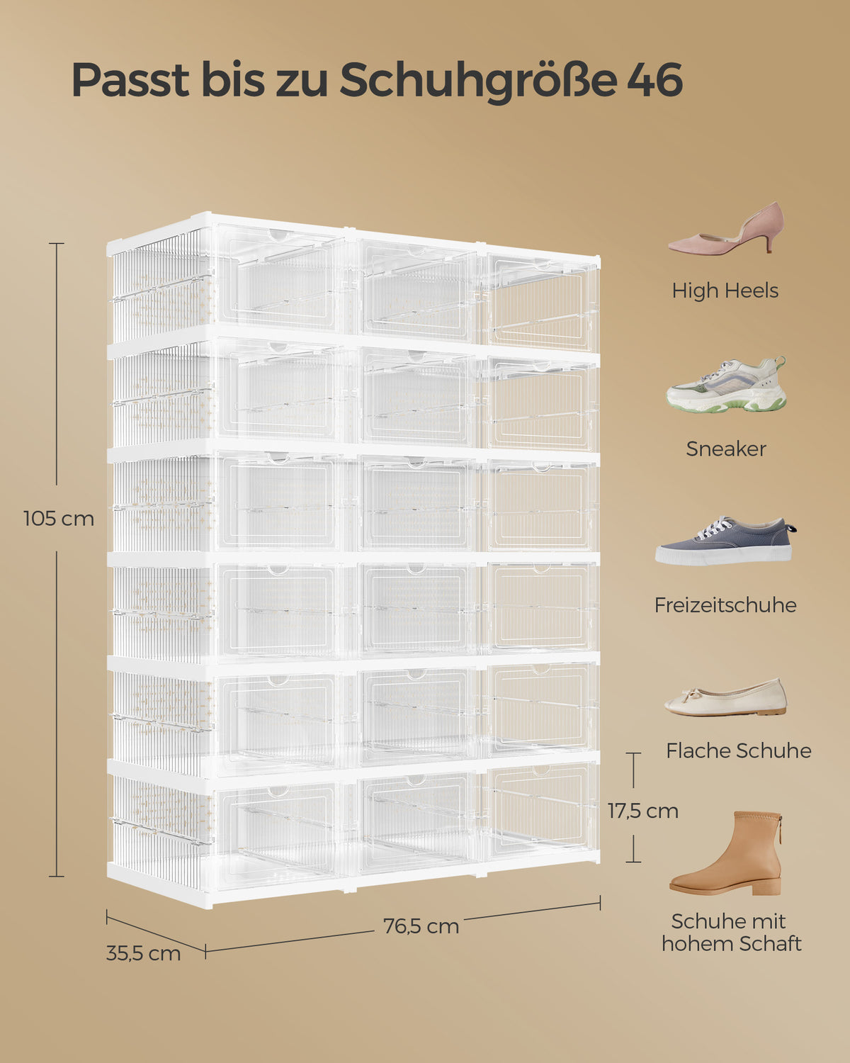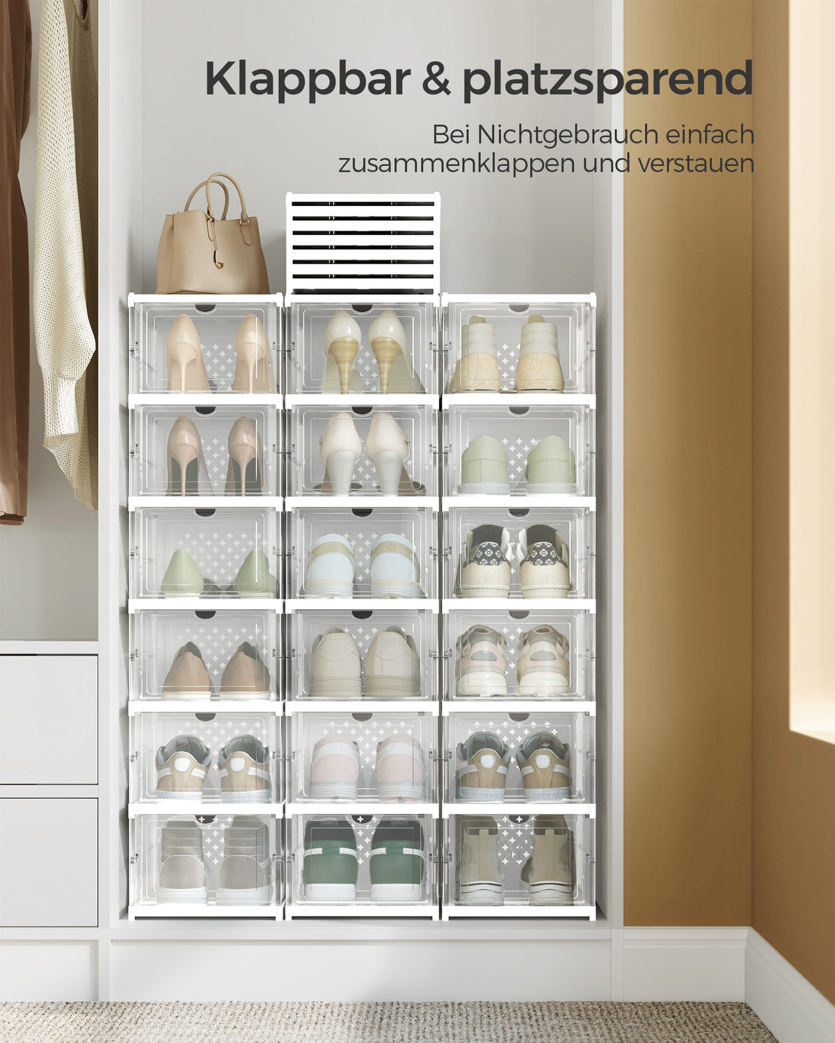 Schoenenkastset van 3 met 18 schoenendozen, montage in 1 minuut 5 x 105 cm