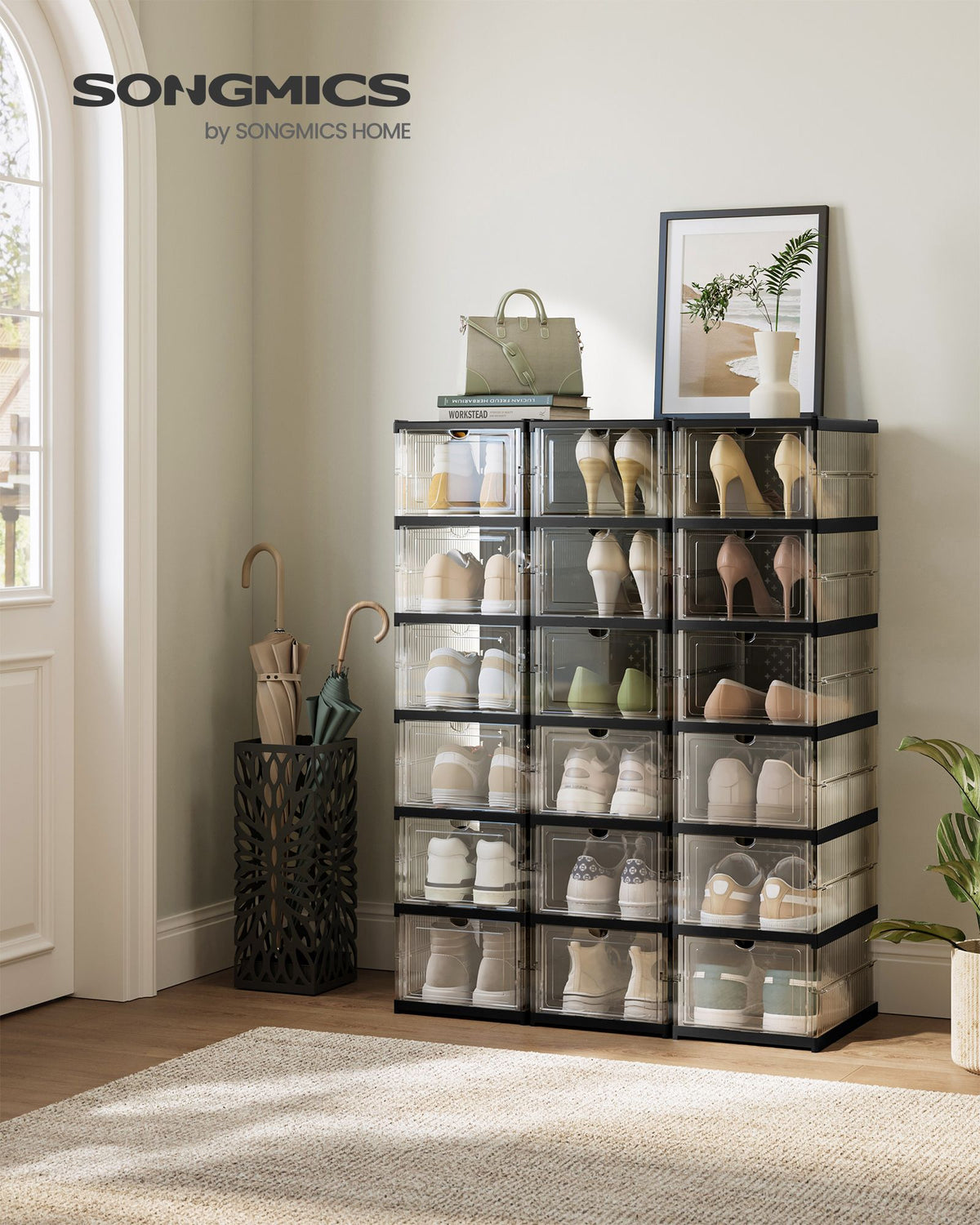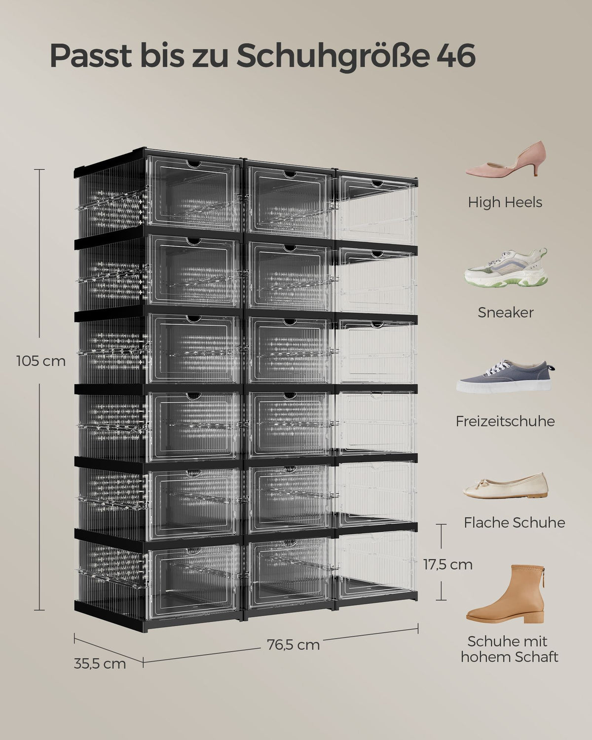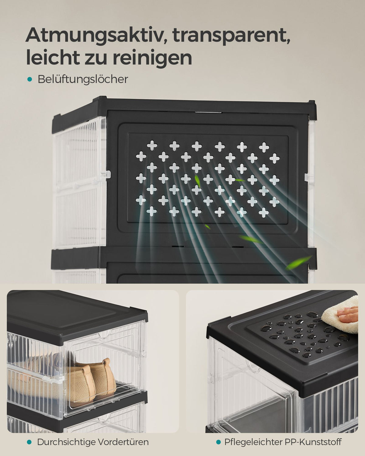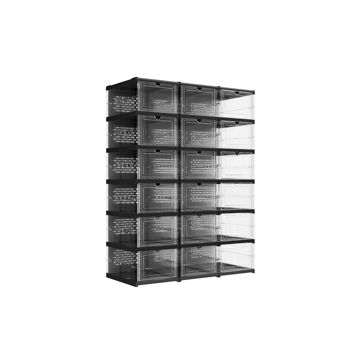 Schoenenkastset van 3 met schoenendozen transparant-inktzwart 5 x 105 cm