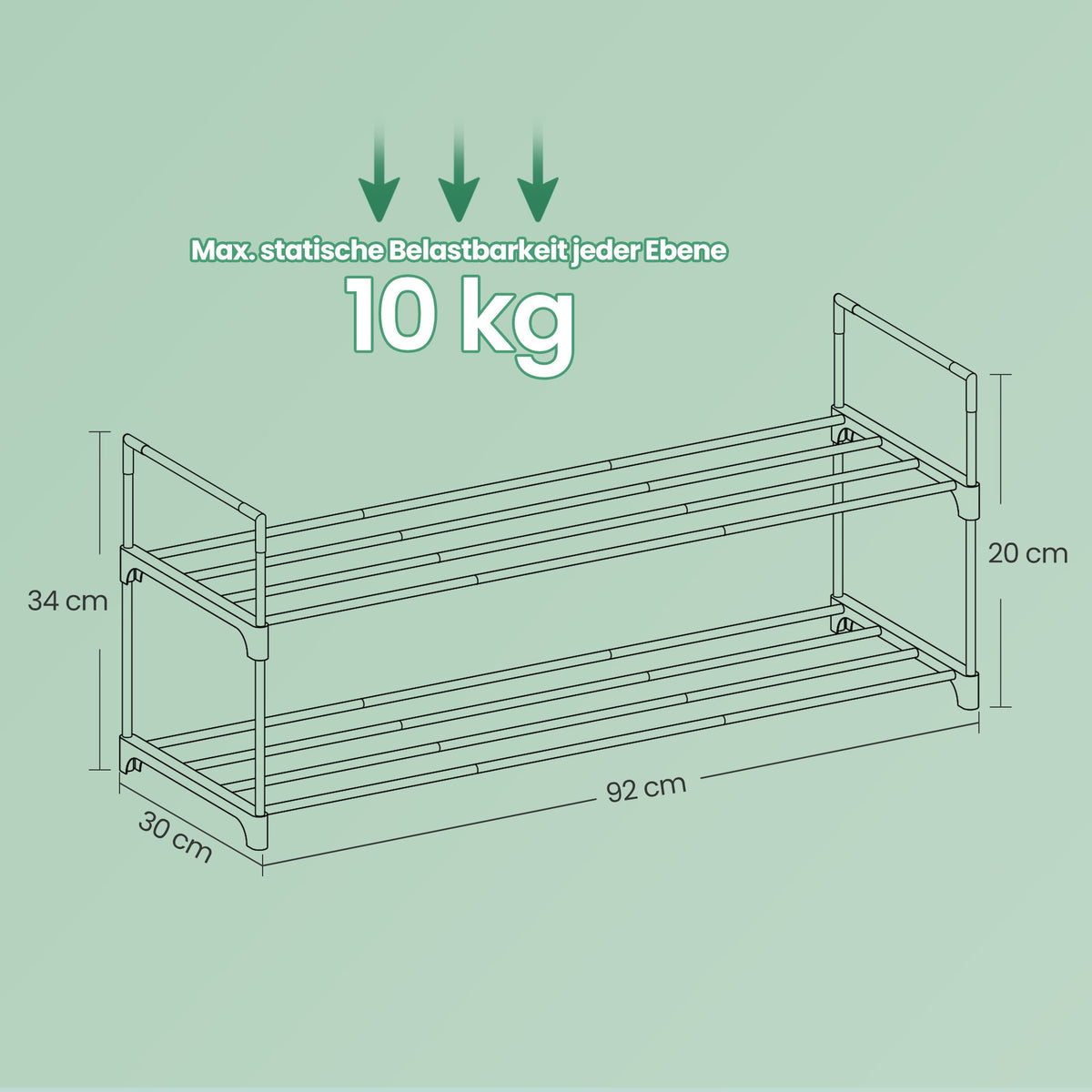 Schoenenrek 2 niveaus, schoenenstandaard metaal, schoenenopbergruimte, 30 x 92 x 34 cm