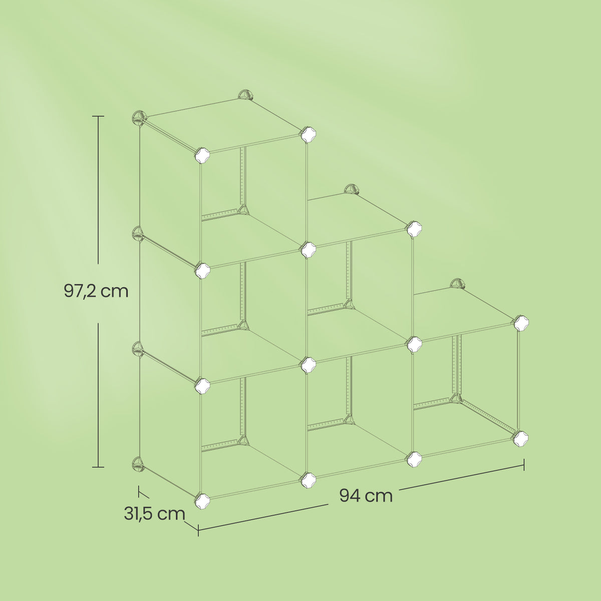 Schoenenrek, insteekplank van PP-kunststof, stellingsysteem van 6 kubussen 93 x 31 x 93cm - LPCB35111S