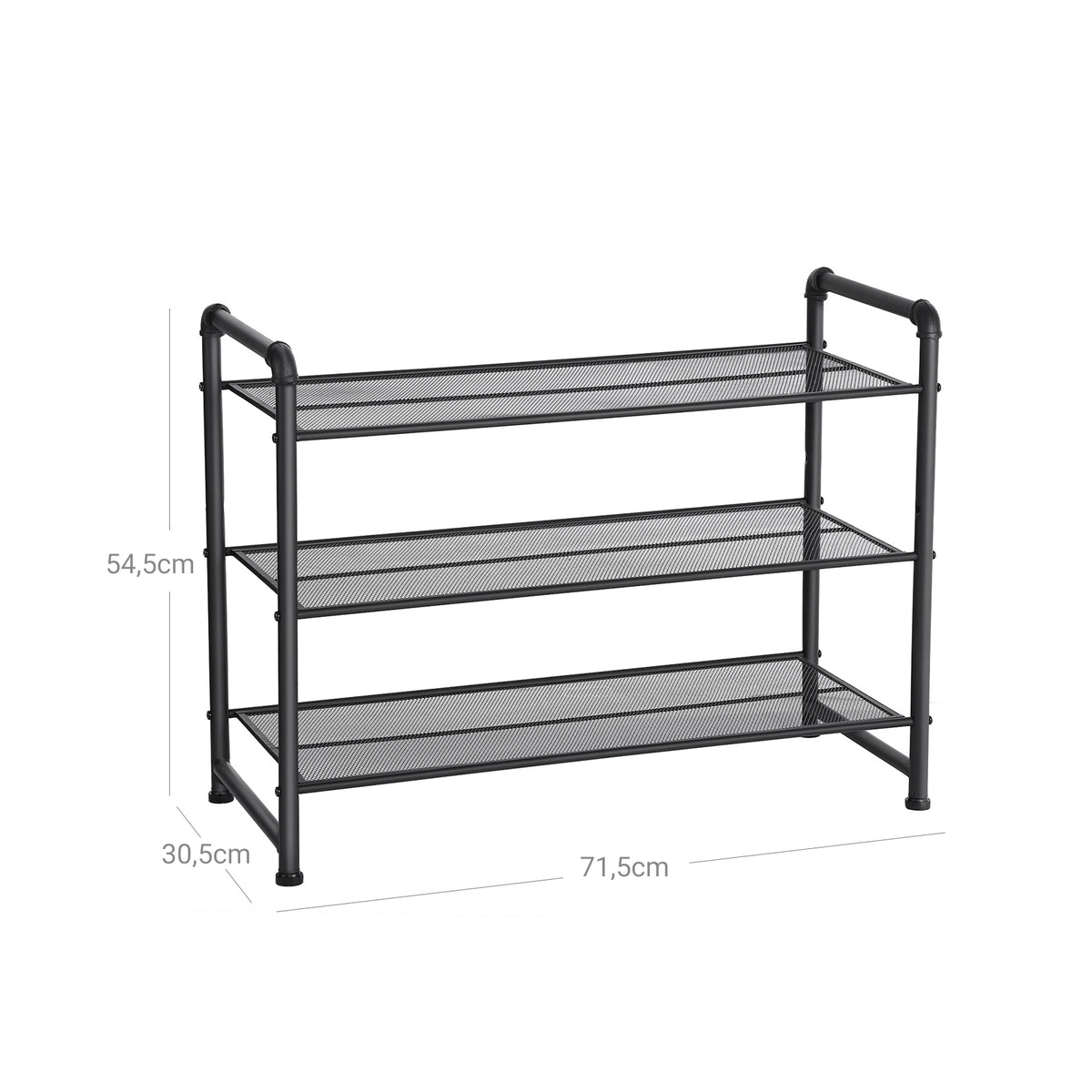 Schoenenrek met 3 fijnmazige roosterniveaus 71,5 x 30,5 x 54,5 cm