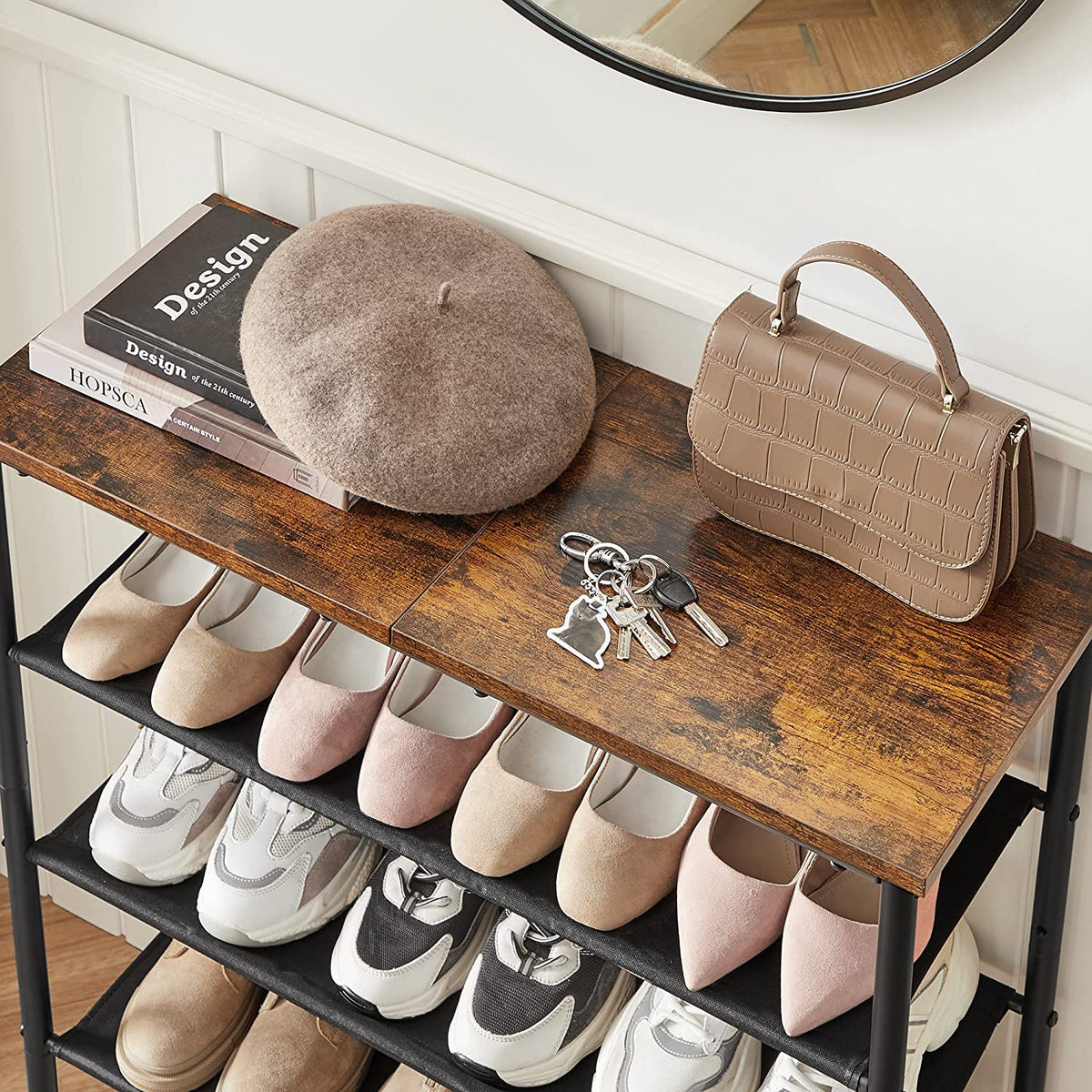 Schoenenrek met 3 planken van polyesterstof 75 x 30 x 71 cm