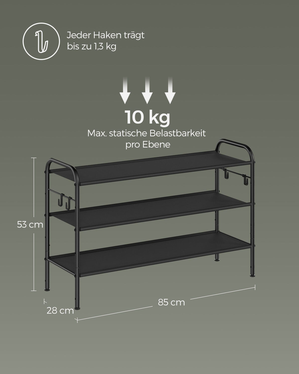 Schoenenrek met 3 planken voor 15 paar schoenen 28 x 85 x 53 cm