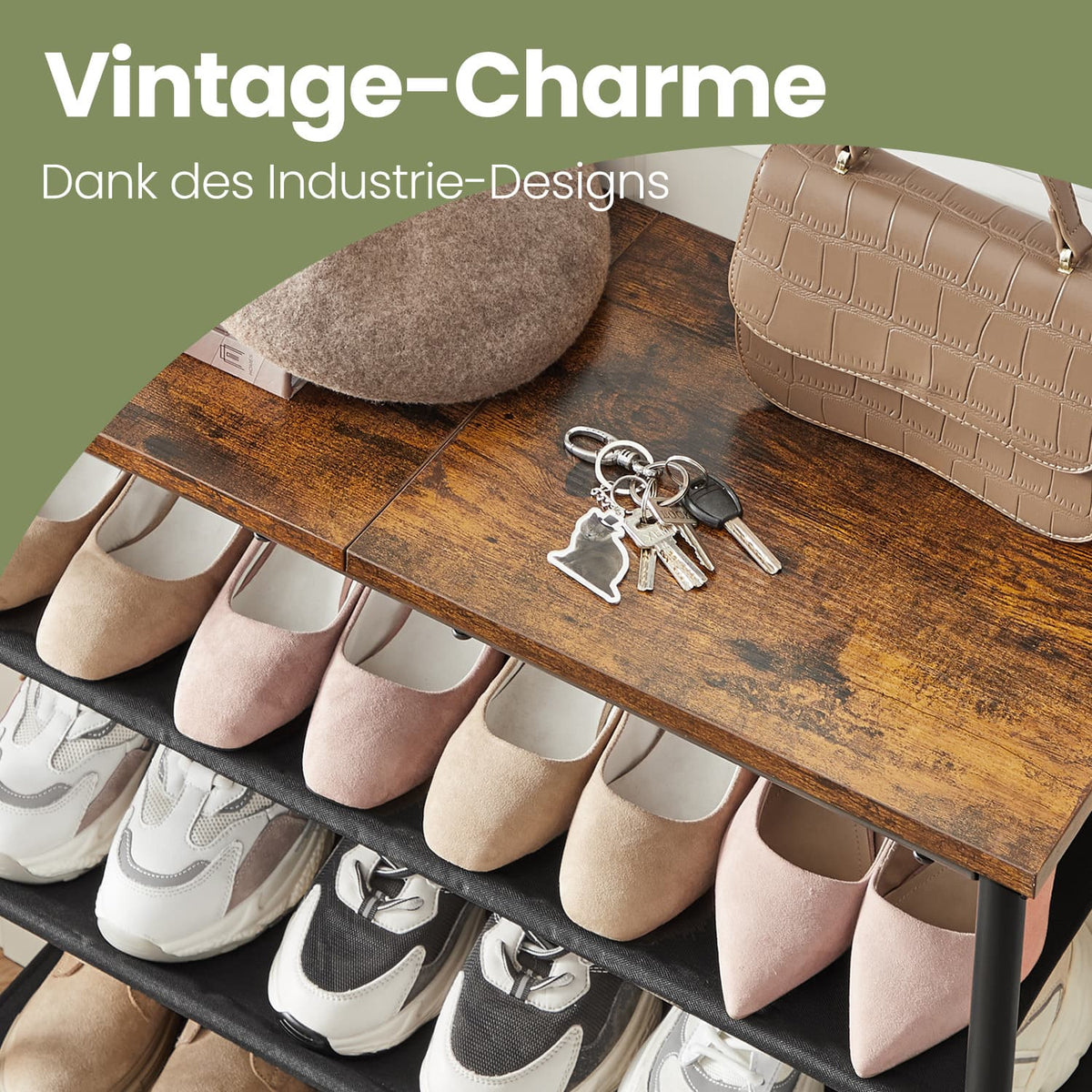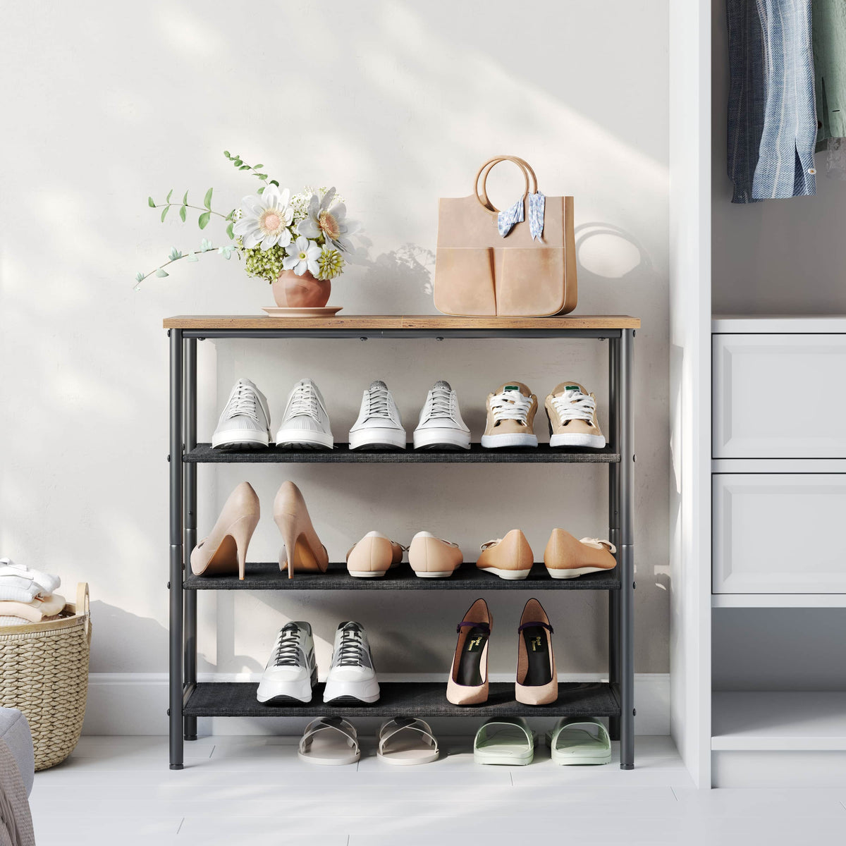 Schoenenrek met 4 niveaus, ruimtebesparend ontwerp, 3 stoffen planken 75 x 30 x 71 cm