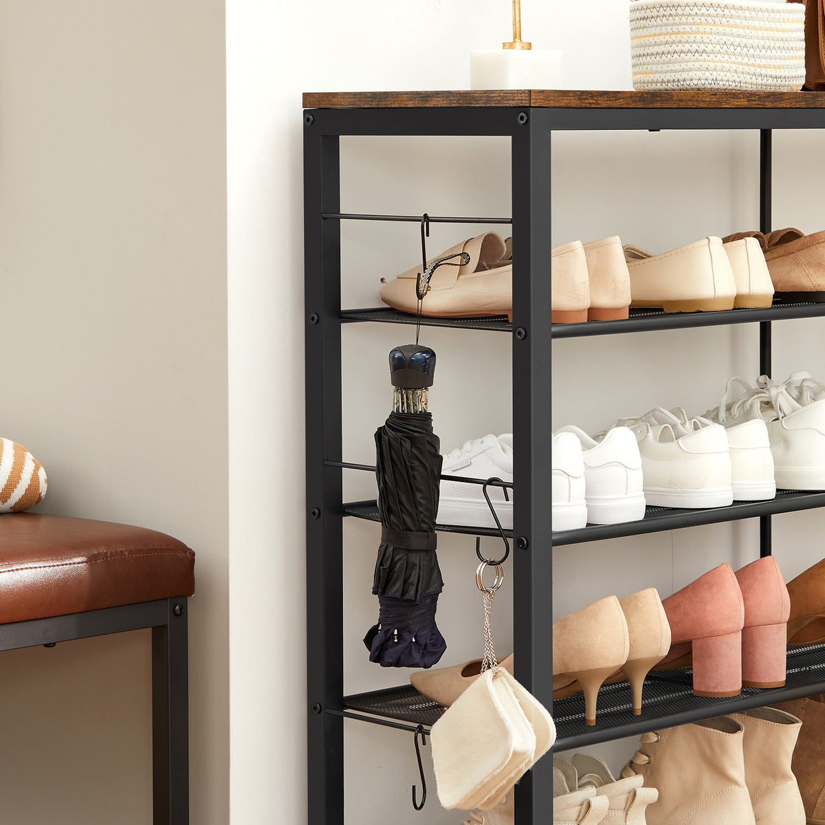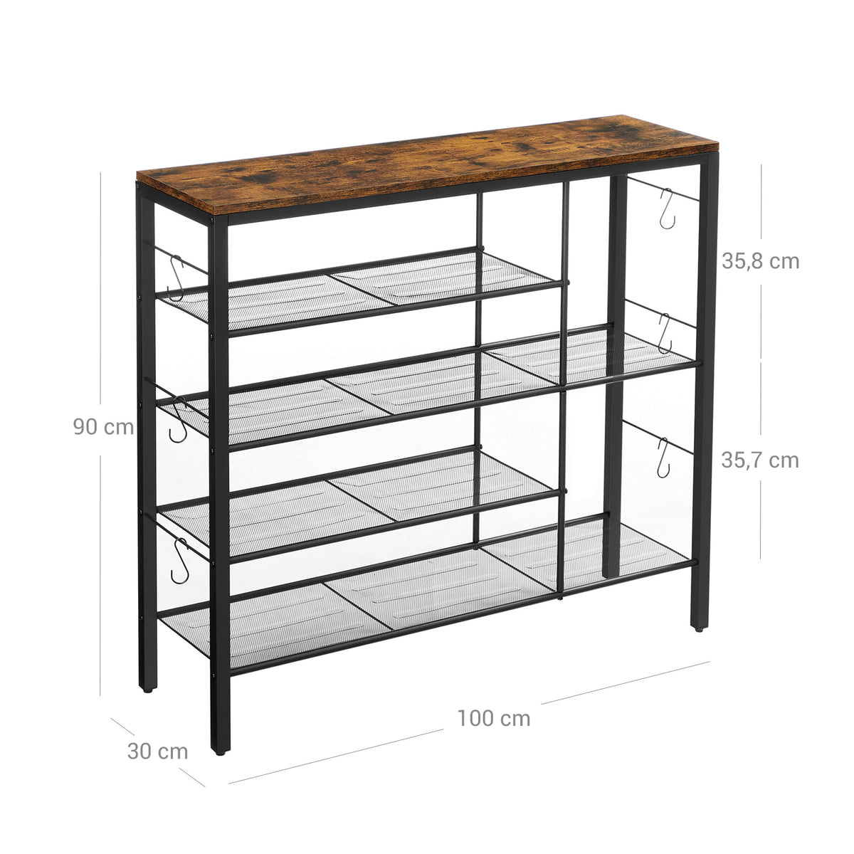 Schoenenrek vintage bruin-zwart 100 x 30 x 90 cm