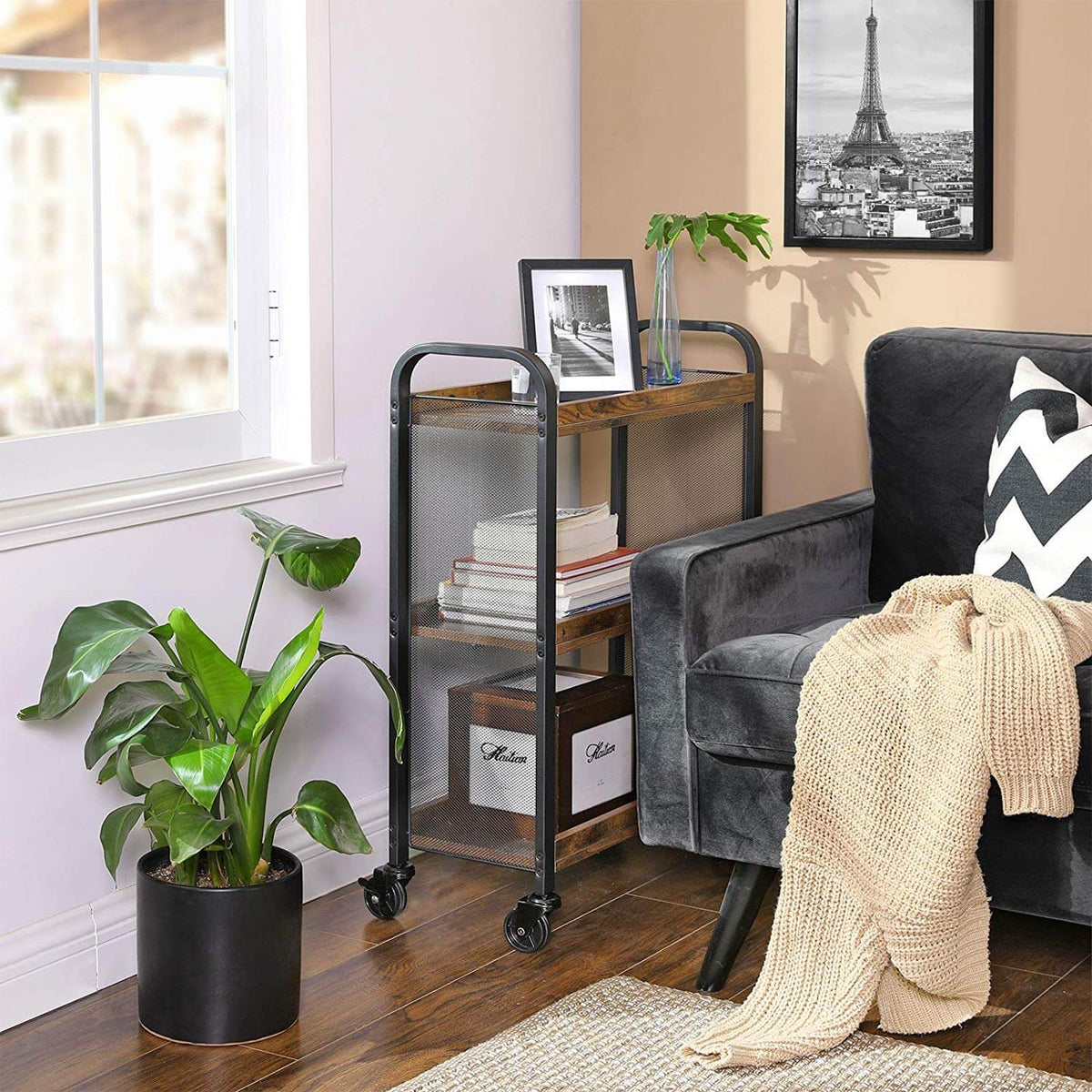 Serveerwagen 3 planken vintage bruin 66 x 26 x 85 cm