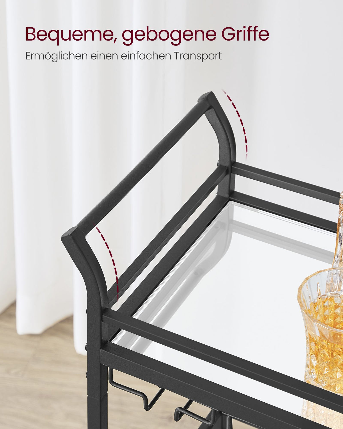 Serveerwagen met wielen zwart 8 x 92 cm