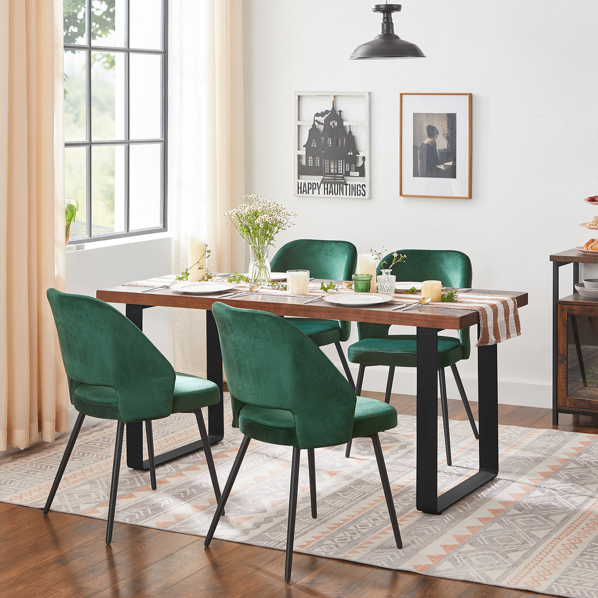 Set van 2 eetkamerstoelen met groene fluwelen hoes 7 cm
