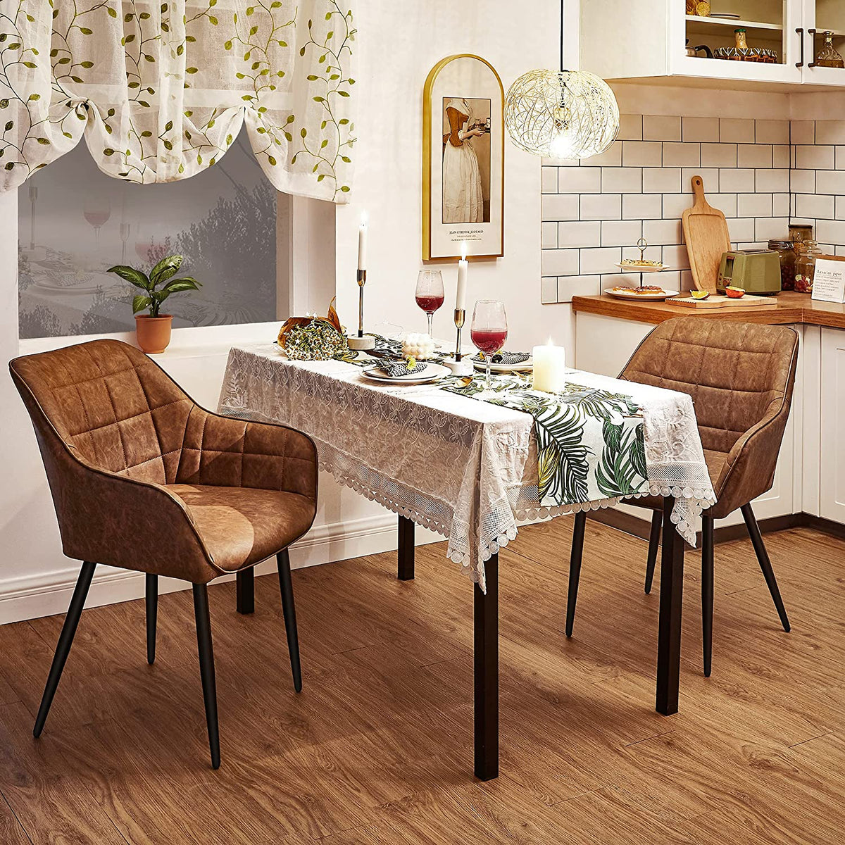 Set van 2 eetkamerstoelen met PU-hoes donkerbruin 7 cm