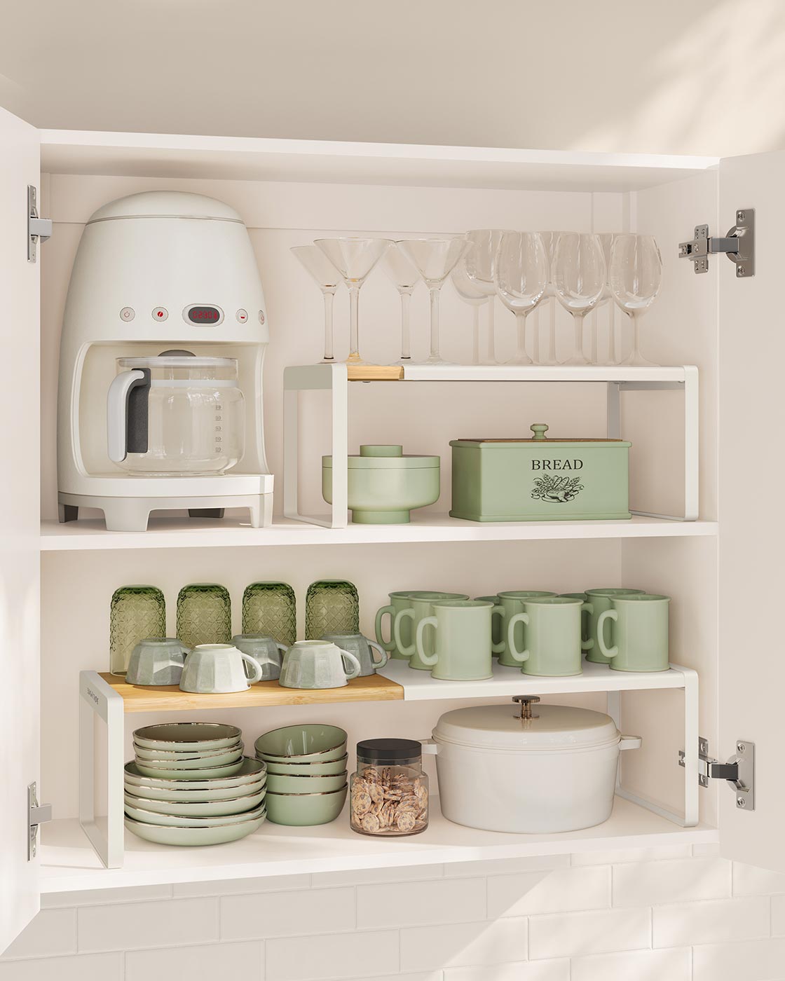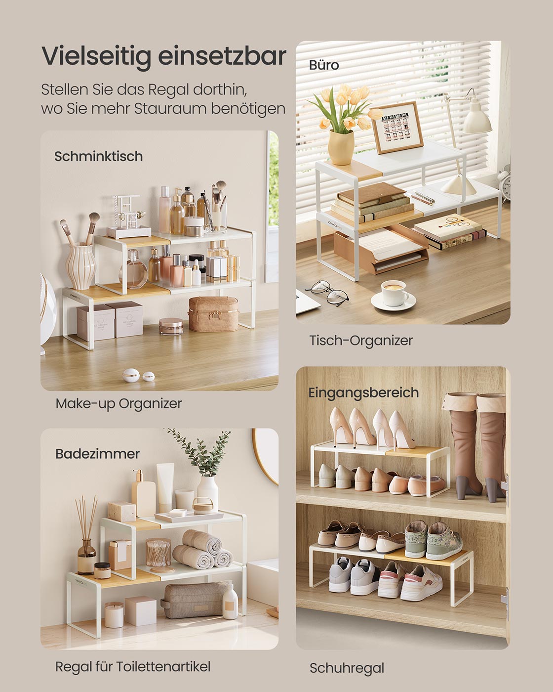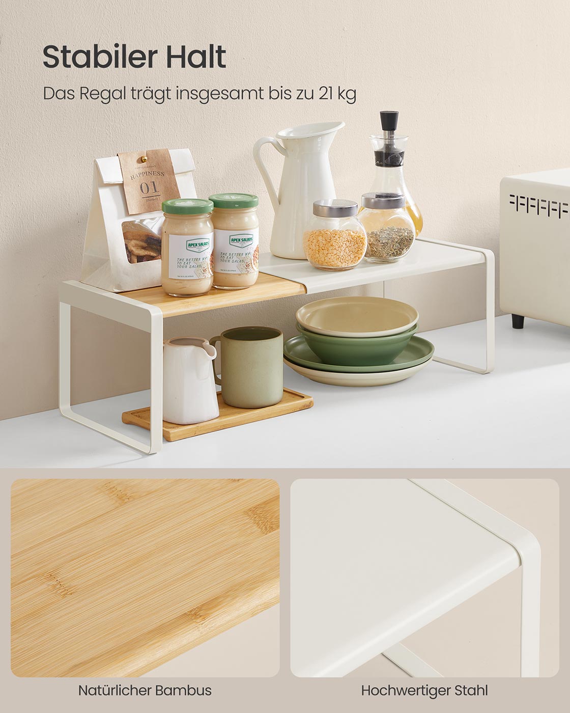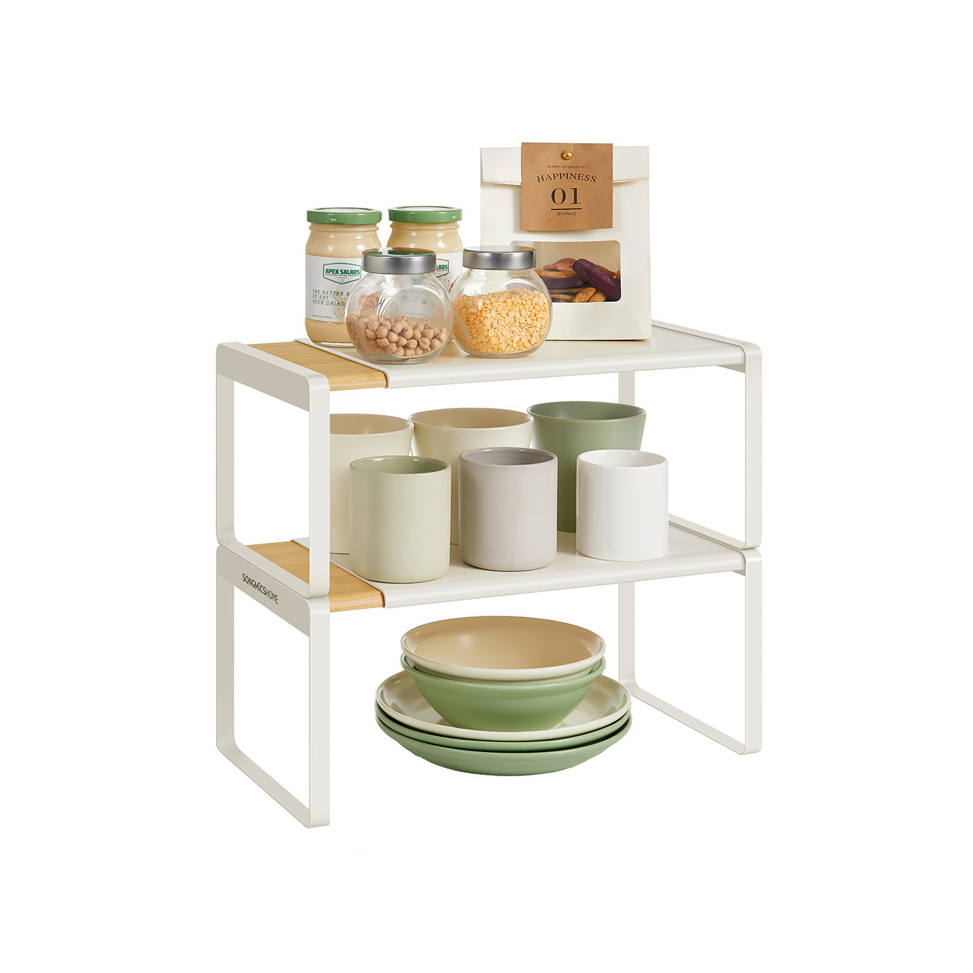 Set van 2 uitschuifbare kruidenrekken in naturel beige en crèmewit 16 cm