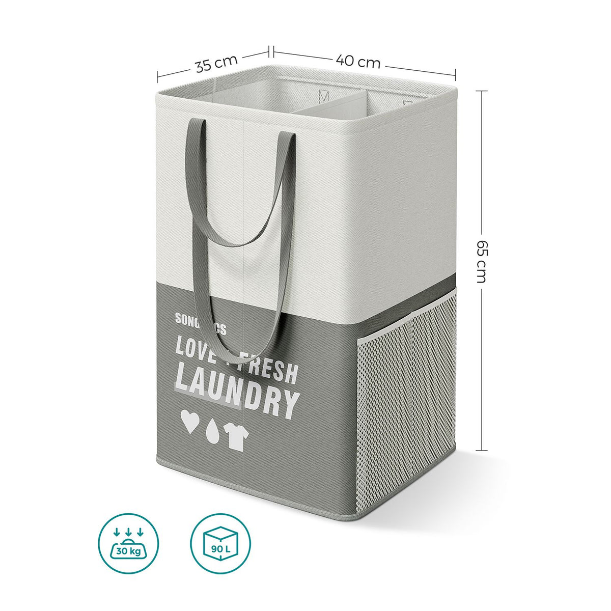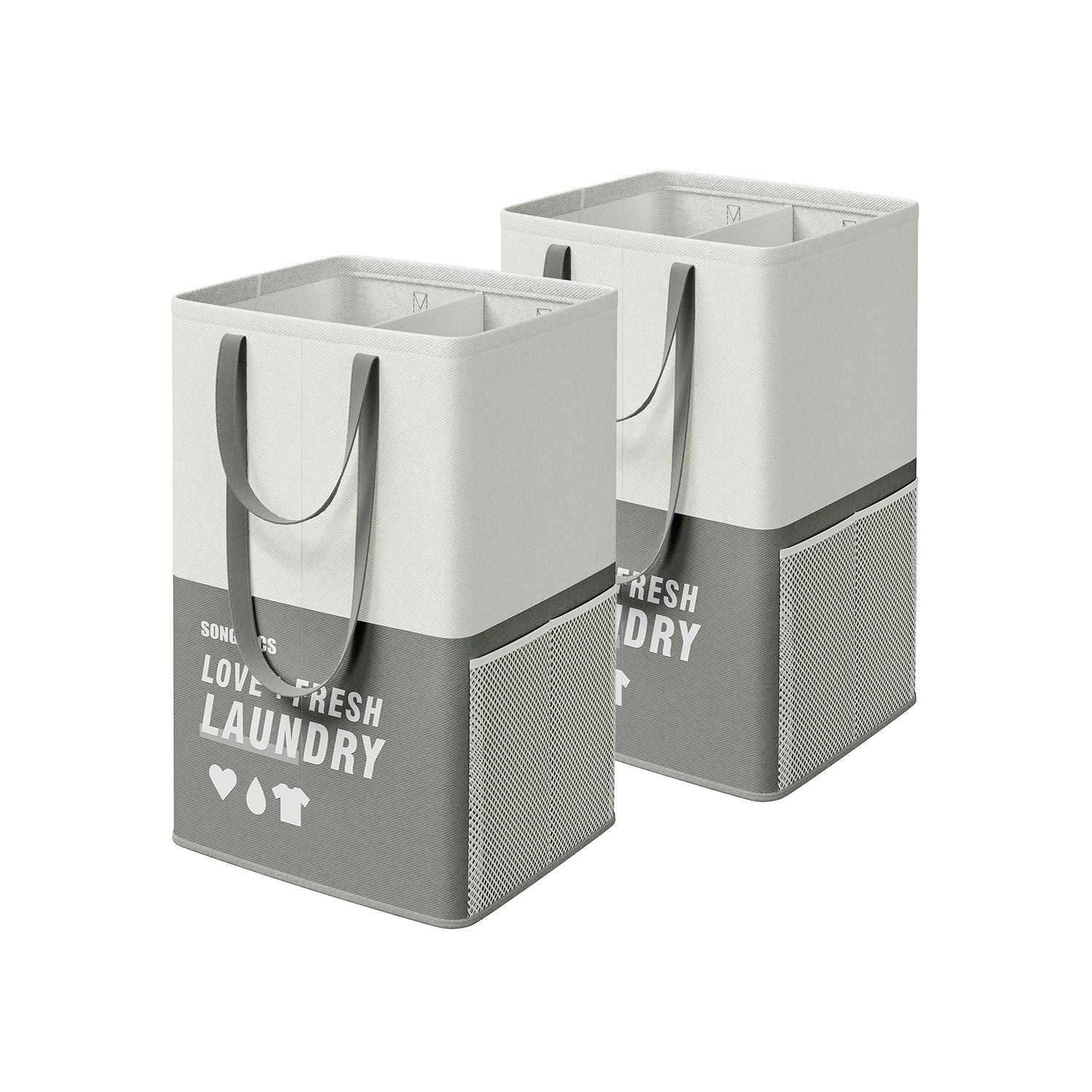 Set van 2 wasmanden met 2 compartimenten, donkergrijs 40 x 35 x 65 cm