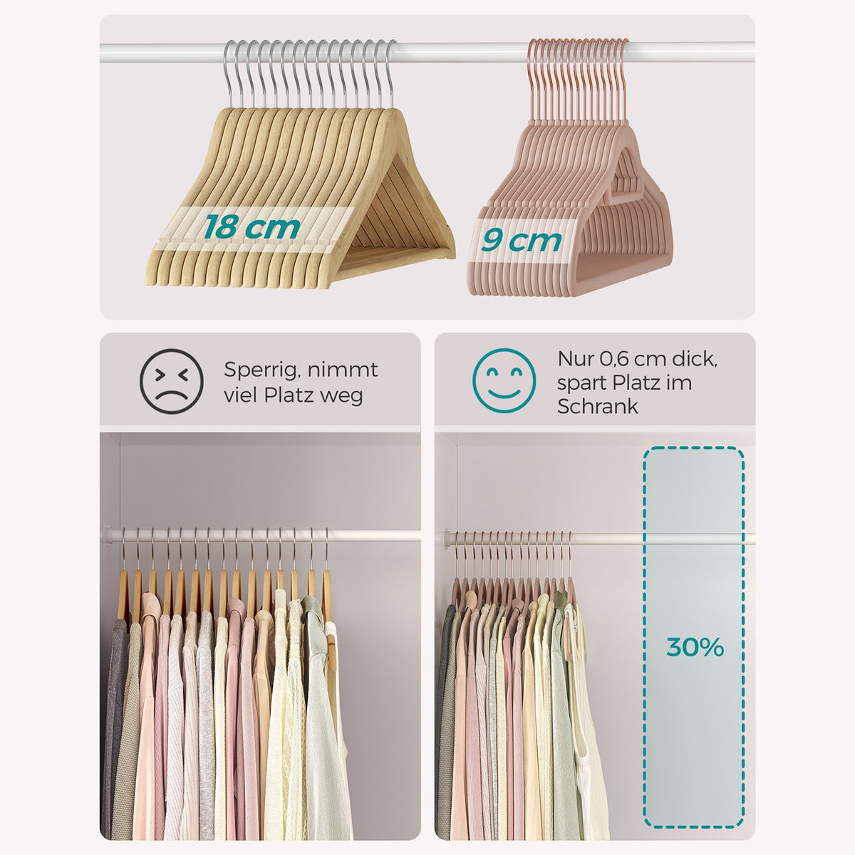 Set van 50 fluwelen kledinghangers, lichtgroen 6 cm - CRF021LB50