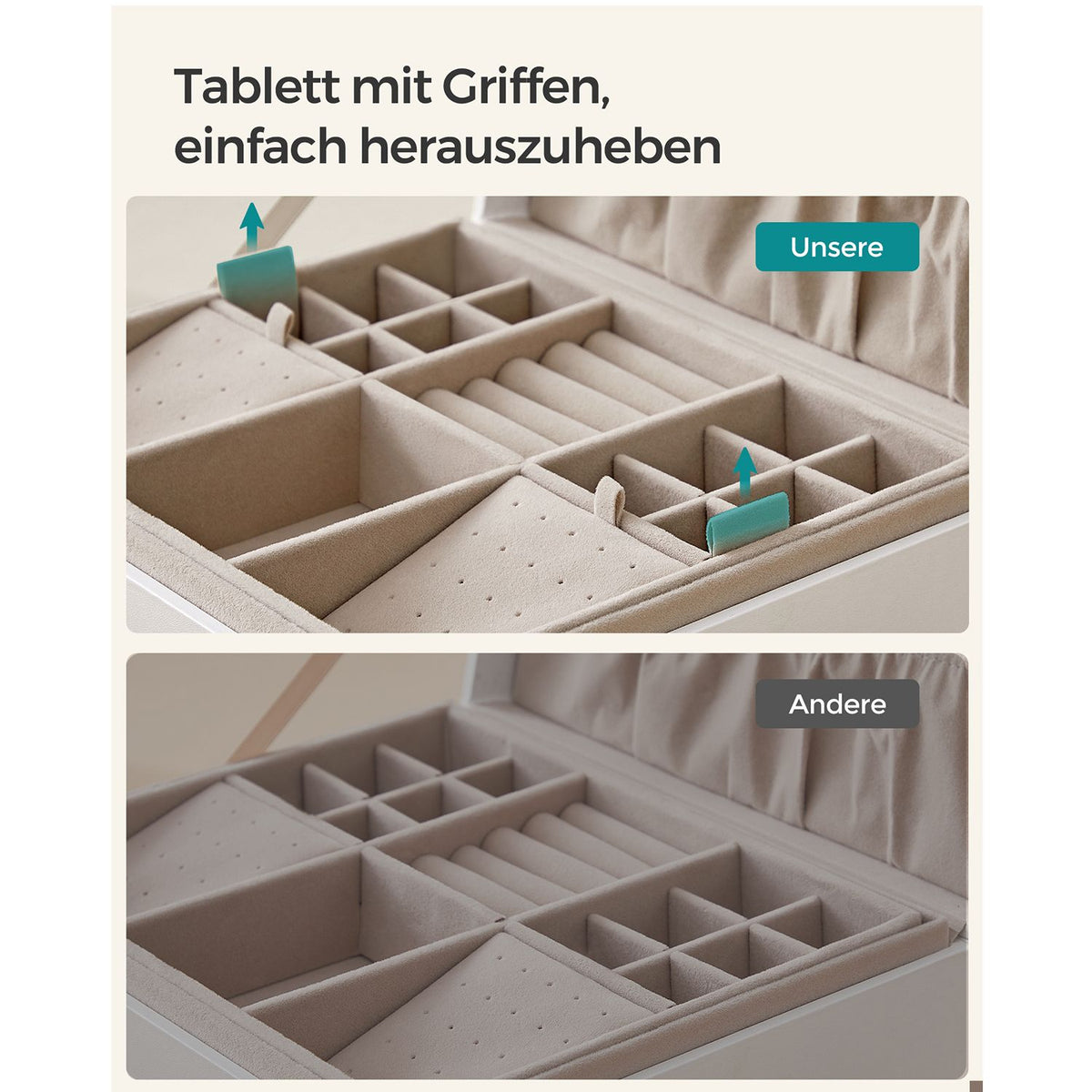 Sieradendoos 2 niveaus met handvat en flexibel sieradenbakje wit 5 x 24 x 11 cm