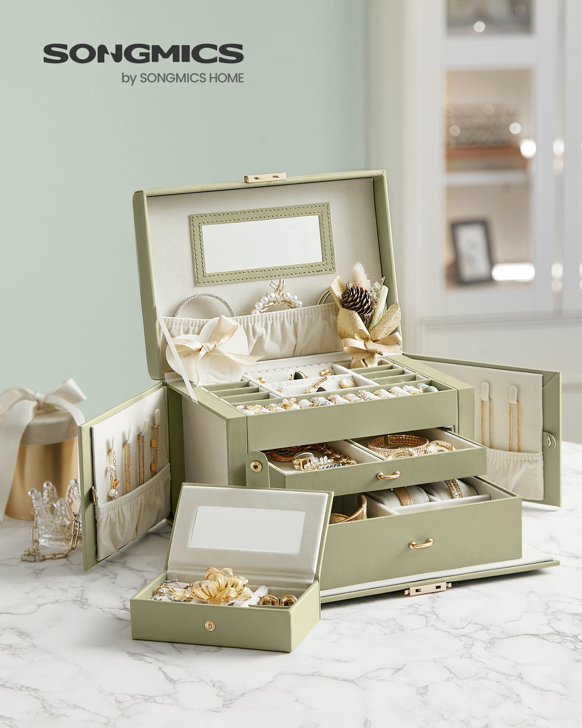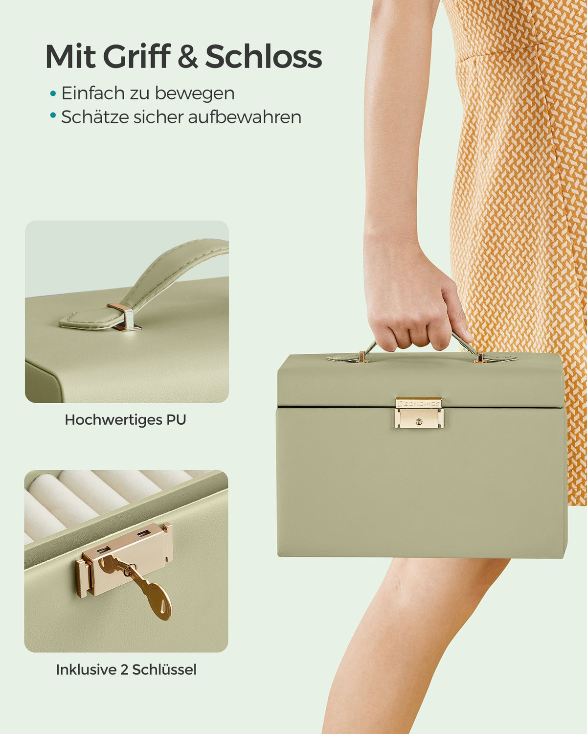 Sieradendoos 3 niveaus PU-deksel in lauriergroen 4 cm