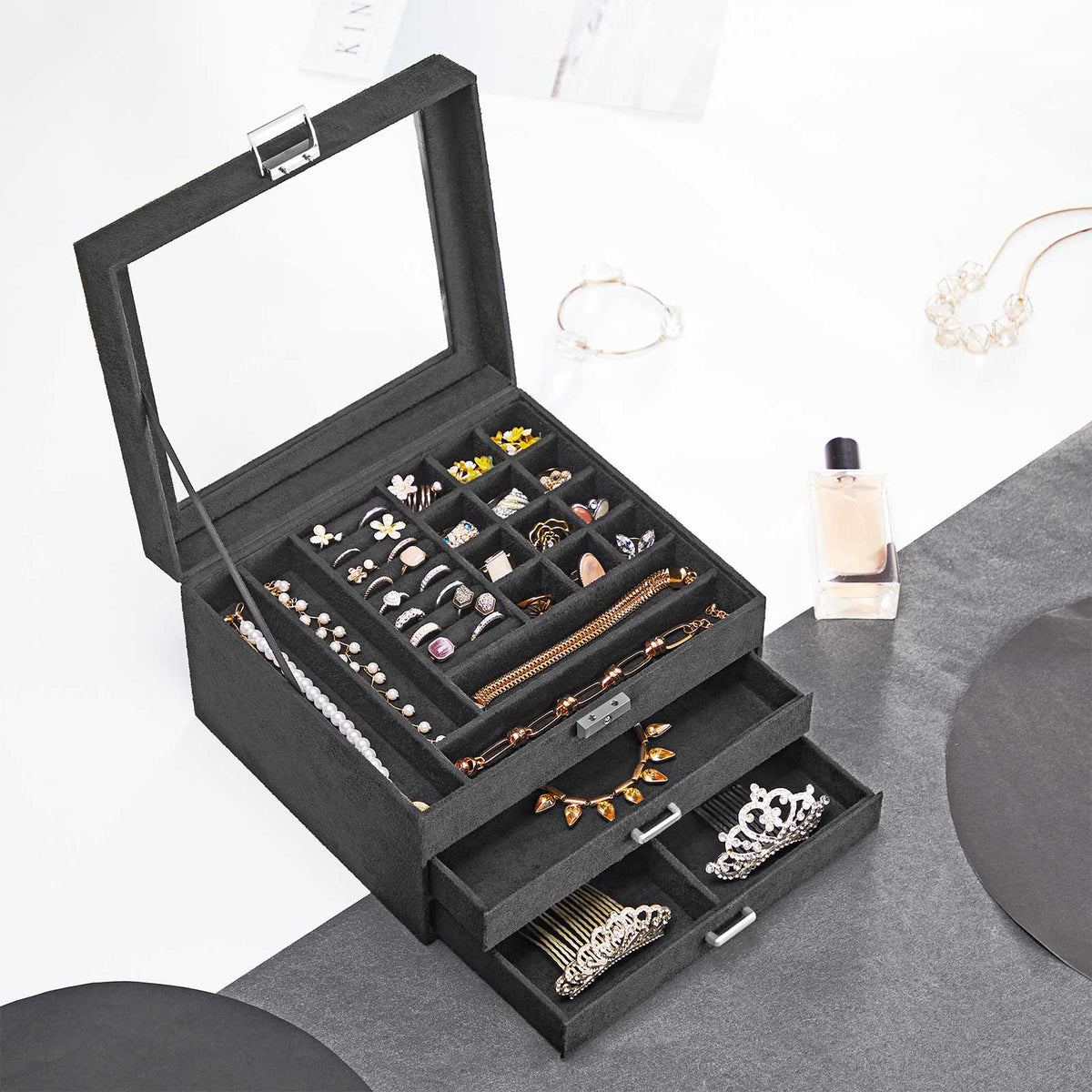 Sieradendoos met 3 niveaus 23,2 x 20,5 x 14 cm - JBC158G01