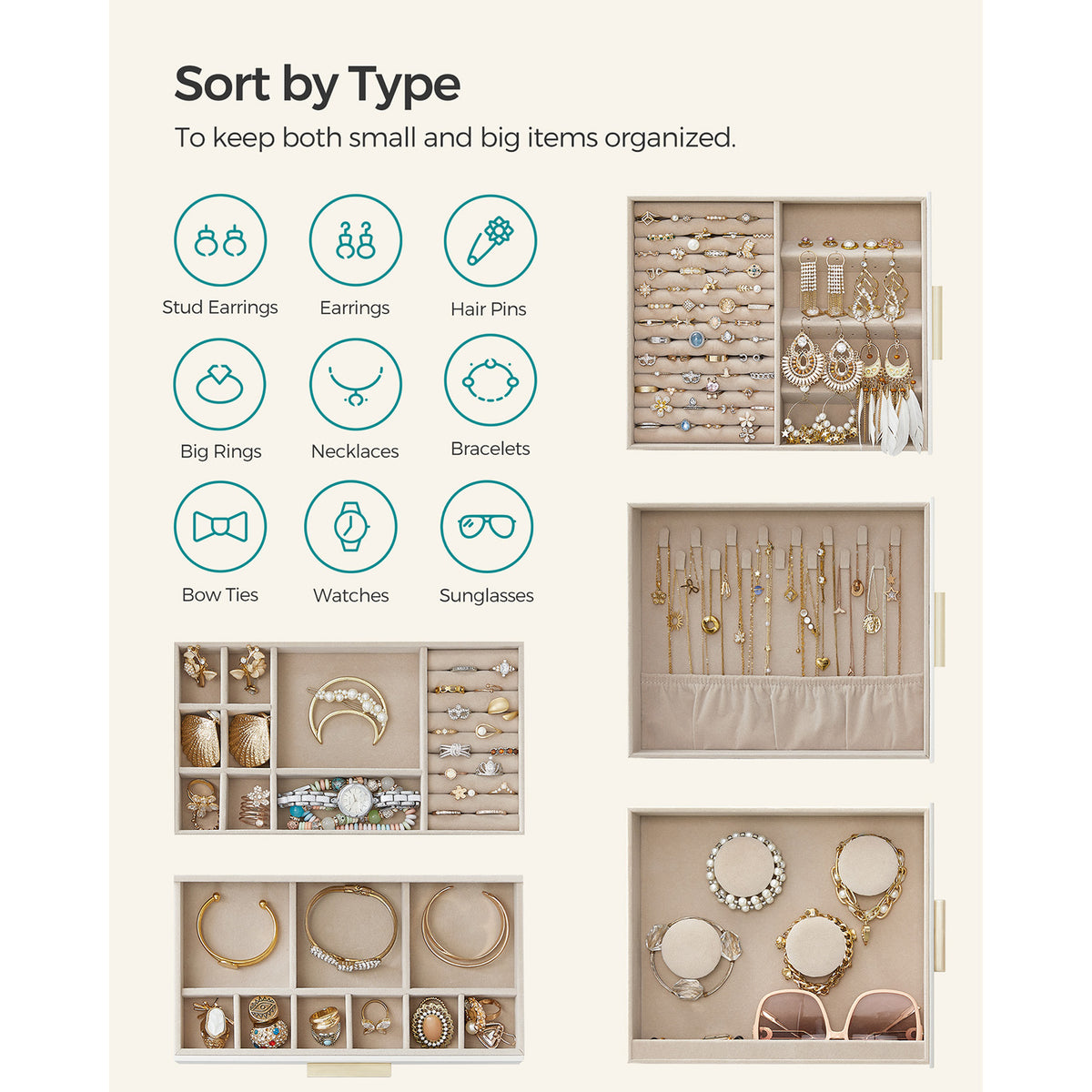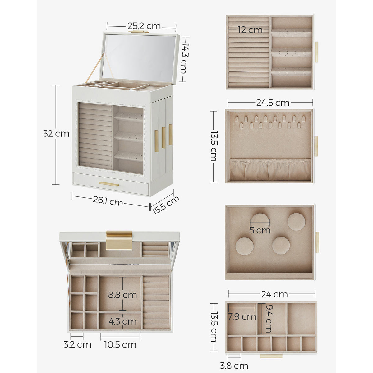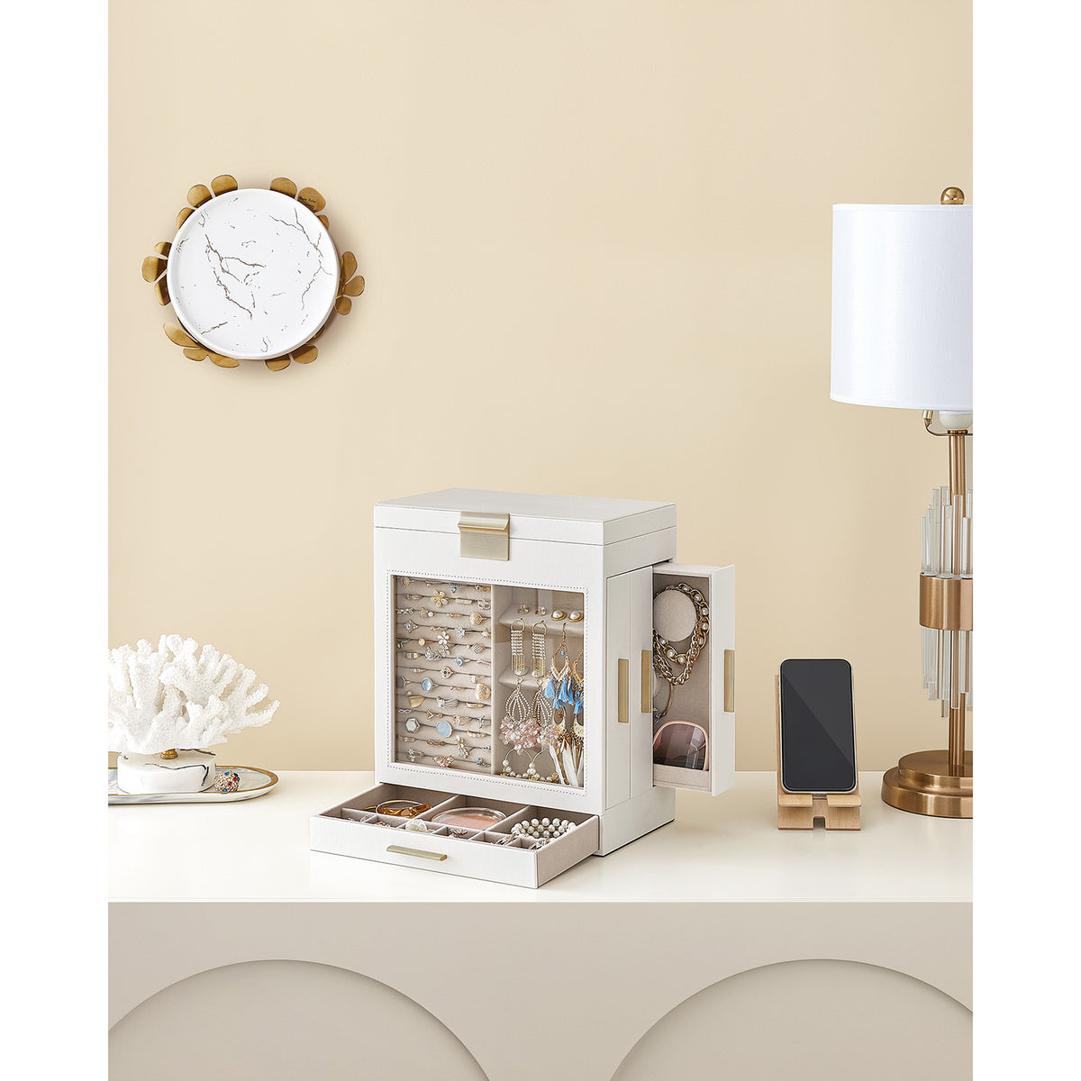 Sieradendoos met glazen vensterwolk witgoud 1 x 32 cm
