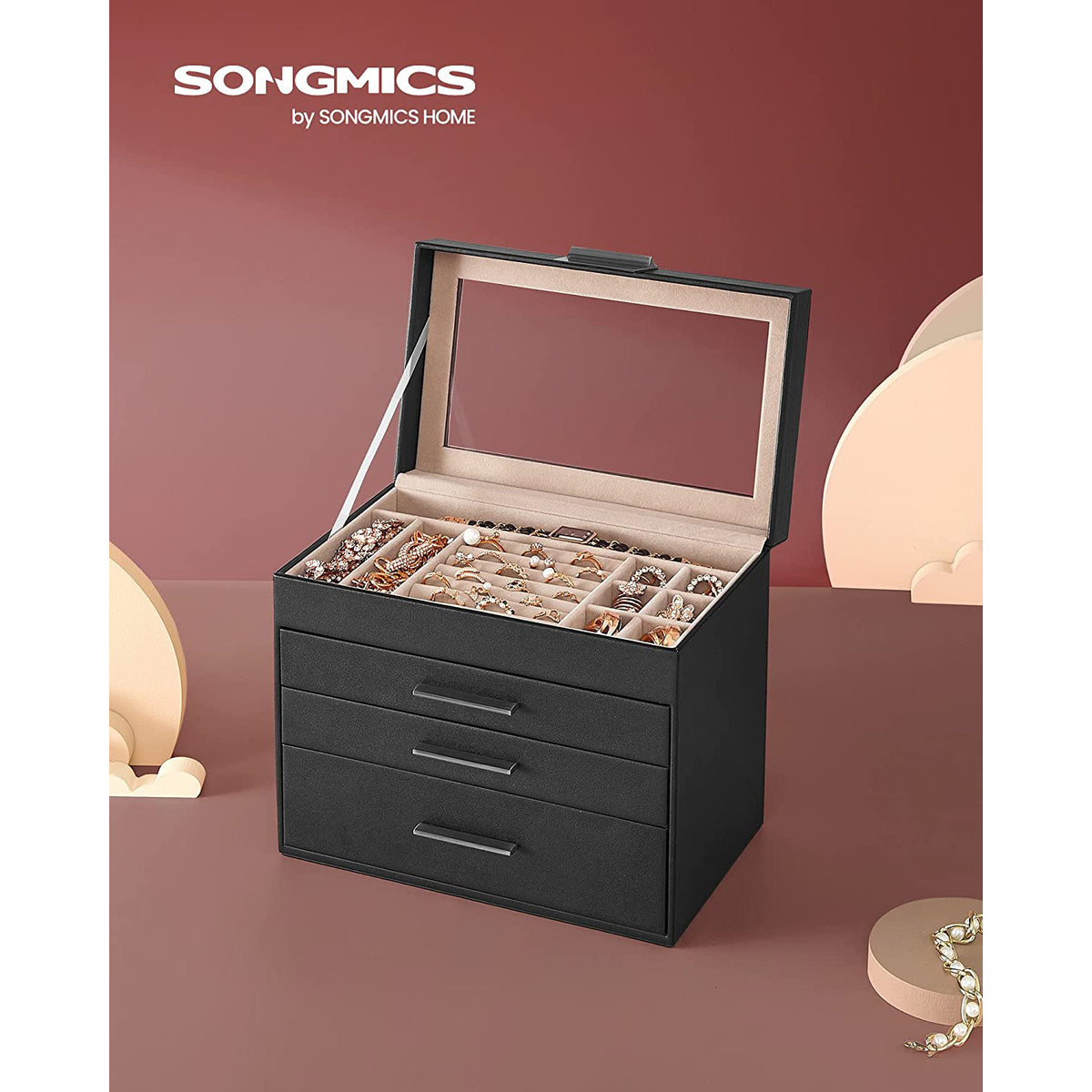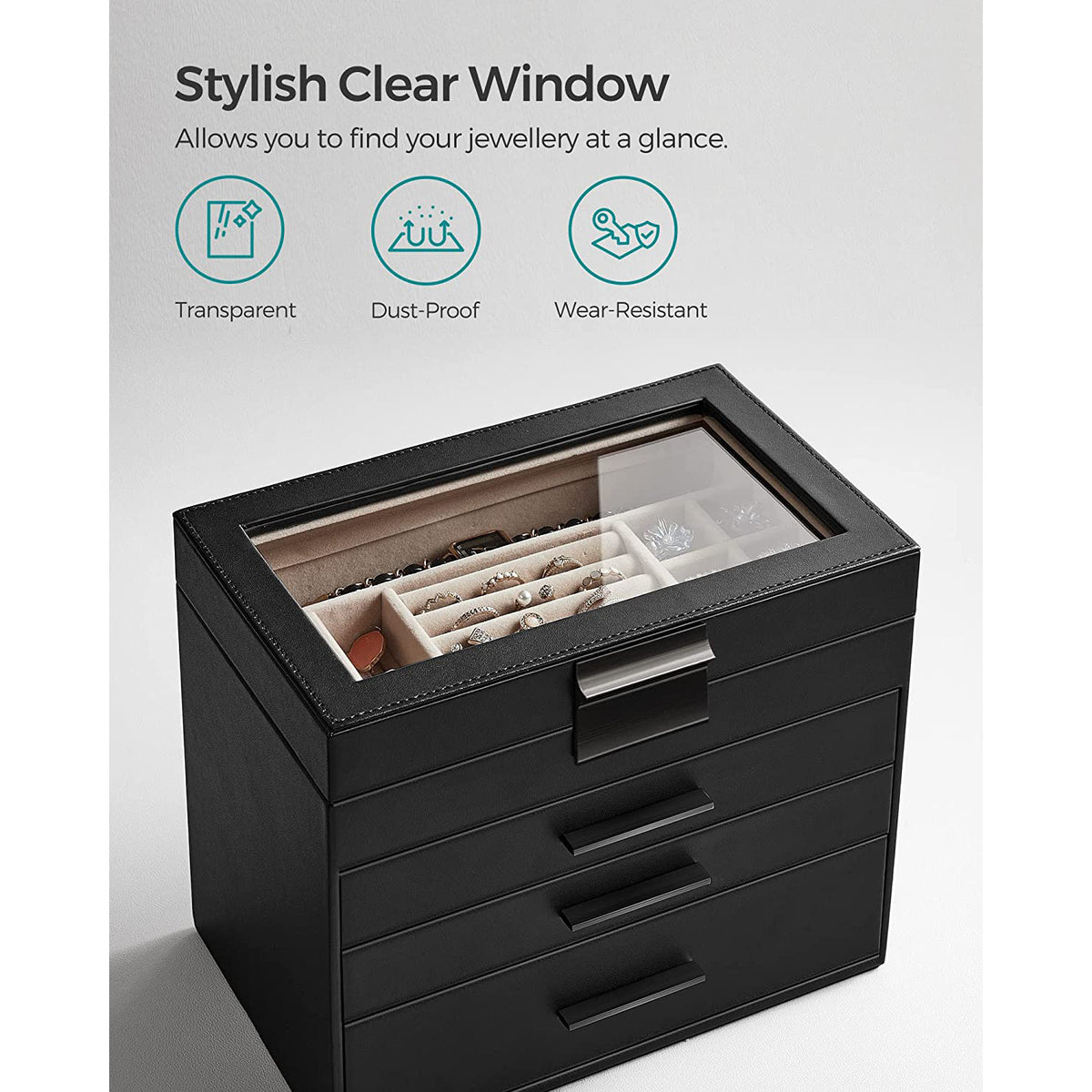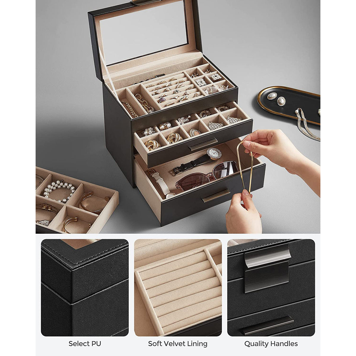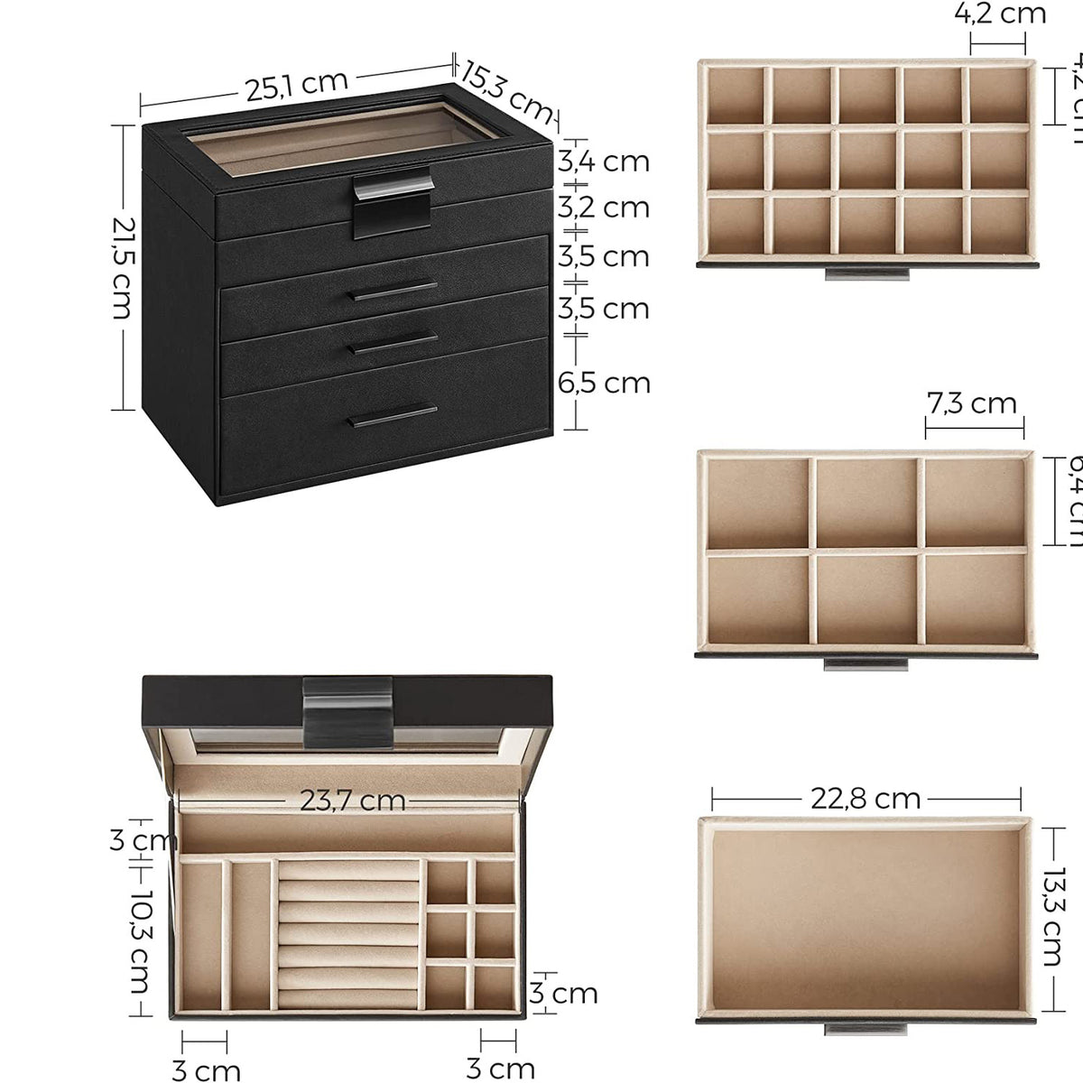 Sieradendoos met lades grafietzwart-zilver 5 cm