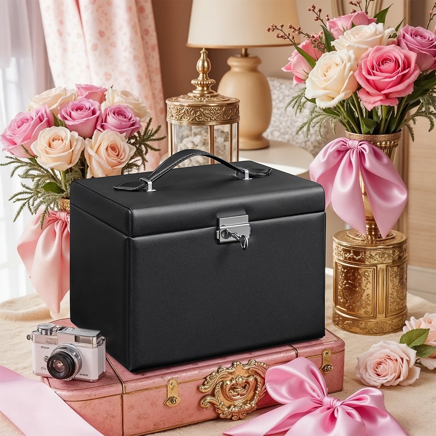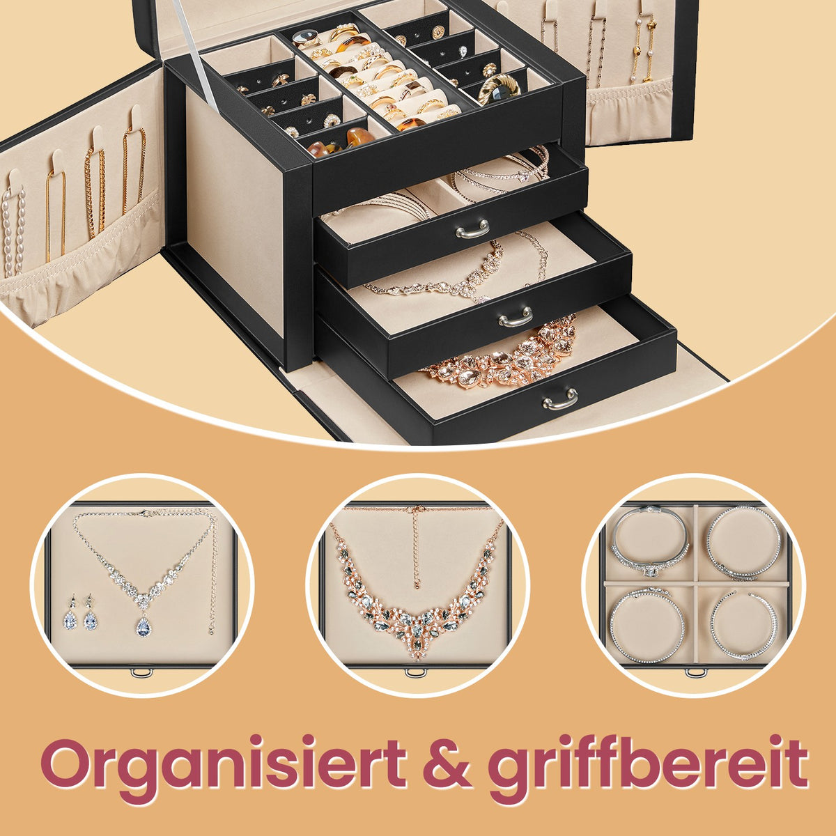 Sieradendoos met lades zwart 22,5 x 17,5 x 16,5 cm - JBCB35159B01