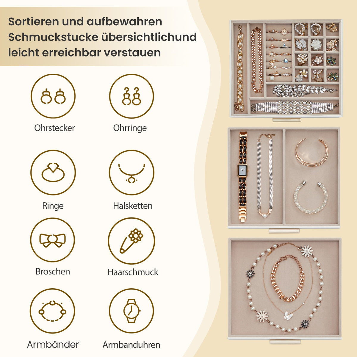Sieradendoos, sieradendoos 3 niveaus, sieradendoos met glazen deksel 23,1 x 20,3 x 13,5 cm - JBCB35239WT