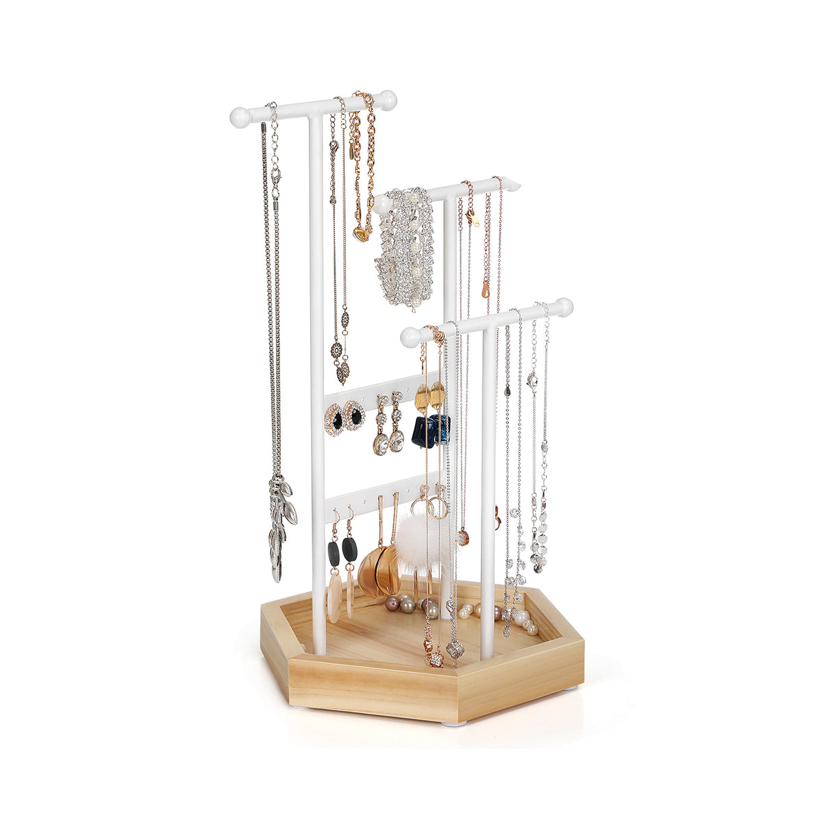 Sieradenhouder van metaal en hout wit