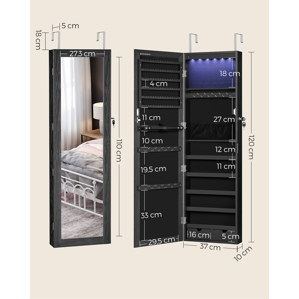 Sieradenkast met hangspiegel 37 x 10 x 120 cm - JJCB35093B01