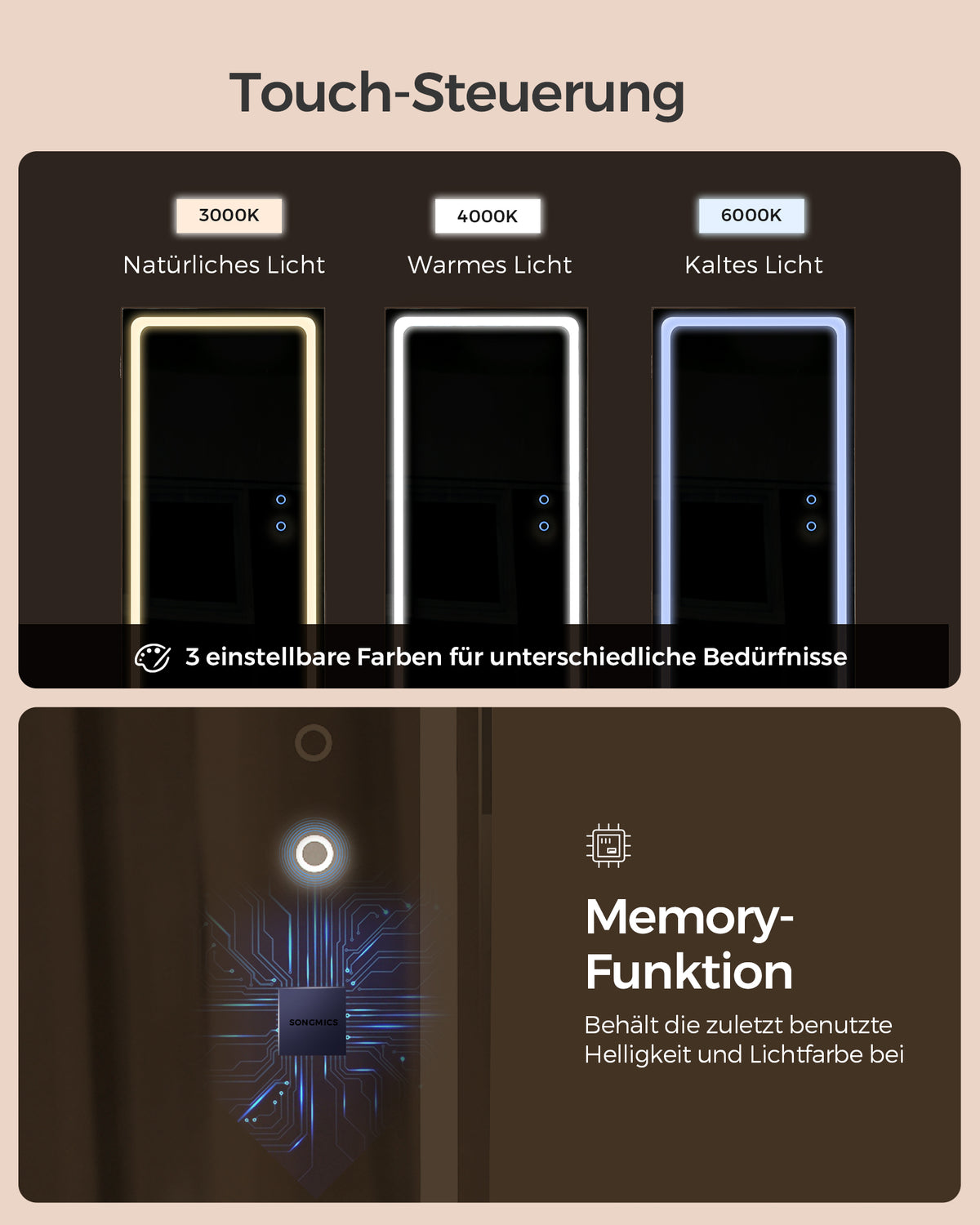 Sieradenkast met ledverlichting en wolkenwitte spiegel 55 x 55 x 159 cm