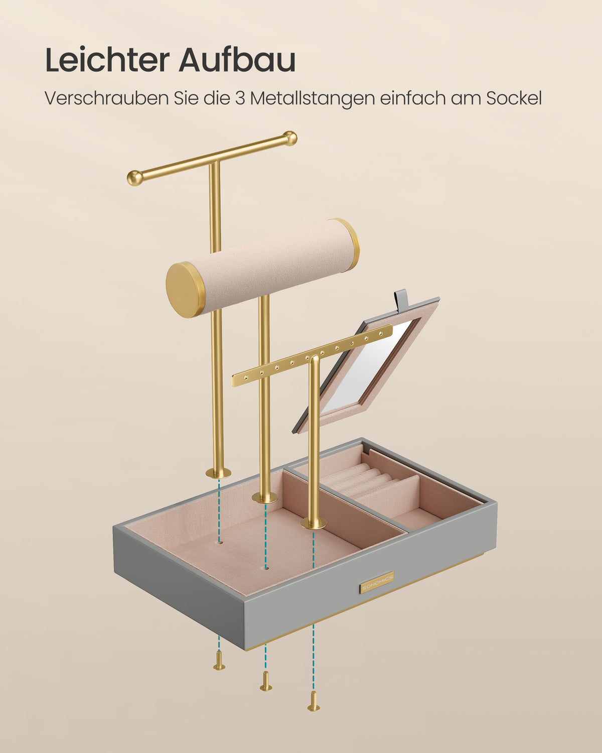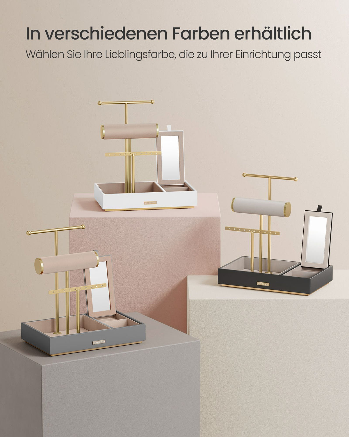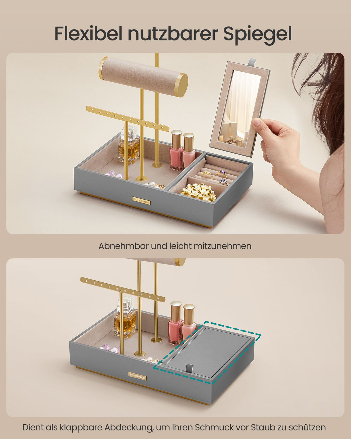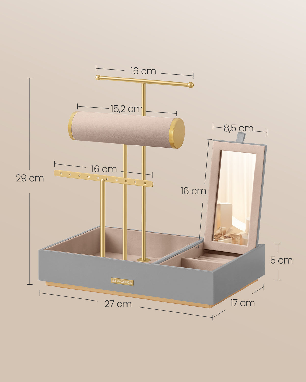 Sieradenstandaard met spiegel duifgrijs-goudkleurig 17 x 27 x 29 cm