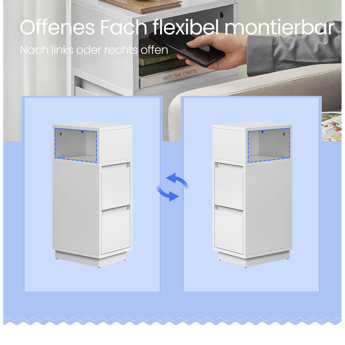 Smal nachtkastje, bijzettafel met 2 lades en open vak 30 x 25 x 65 cm