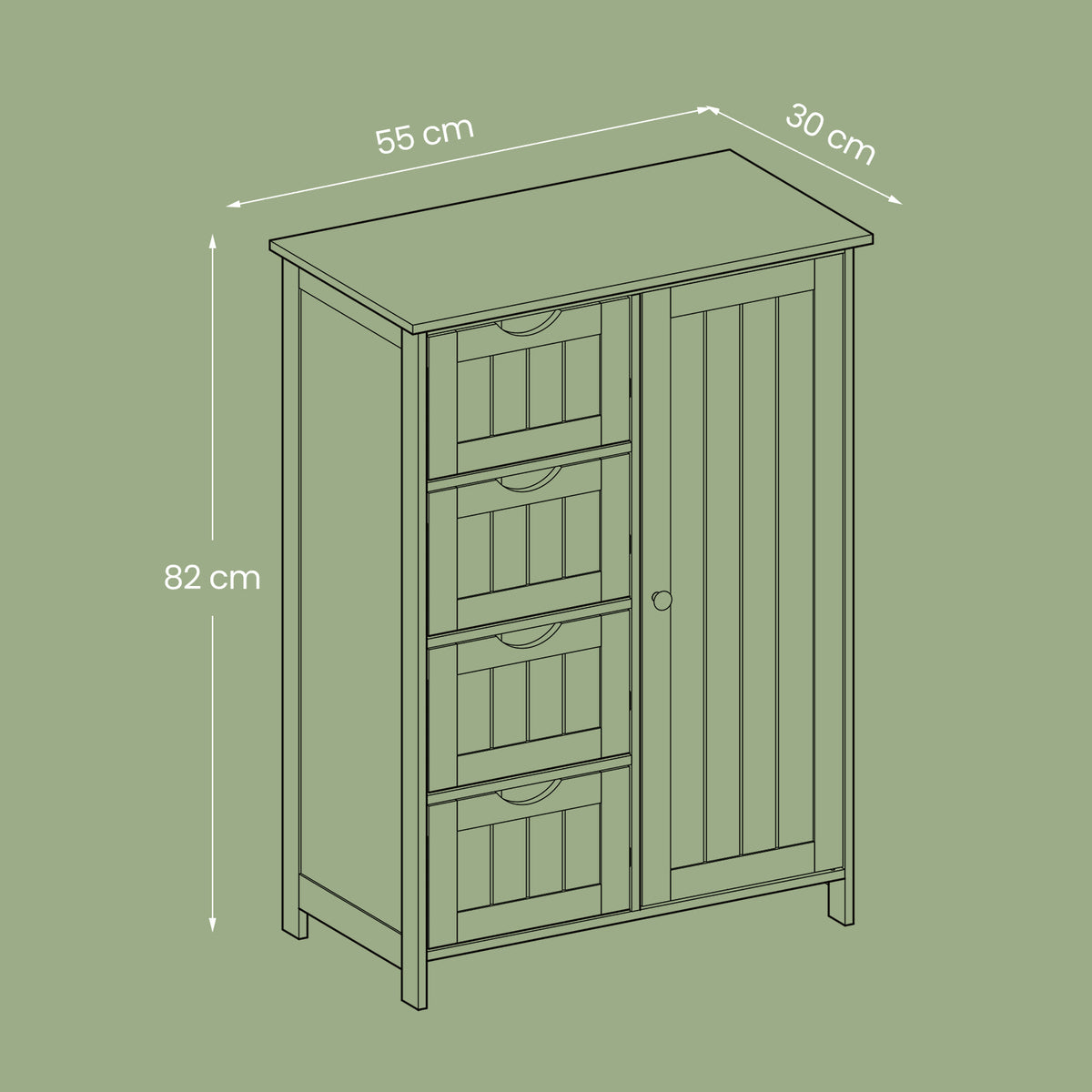Smalle badkamerkast met 4 lades wolkenwit 30 x 55 x 82 cm