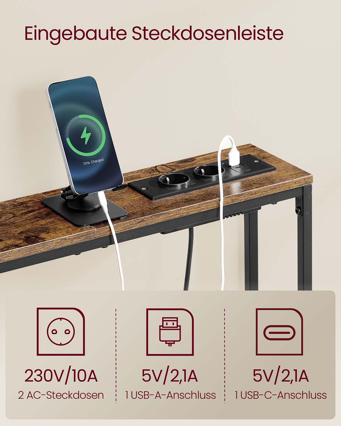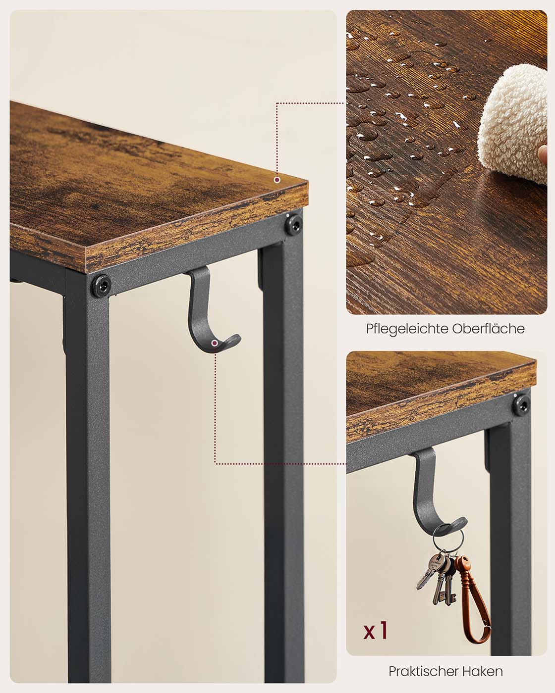 Smalle consoletafel met oplaadstation en haken 15 x 100 x 80 cm
