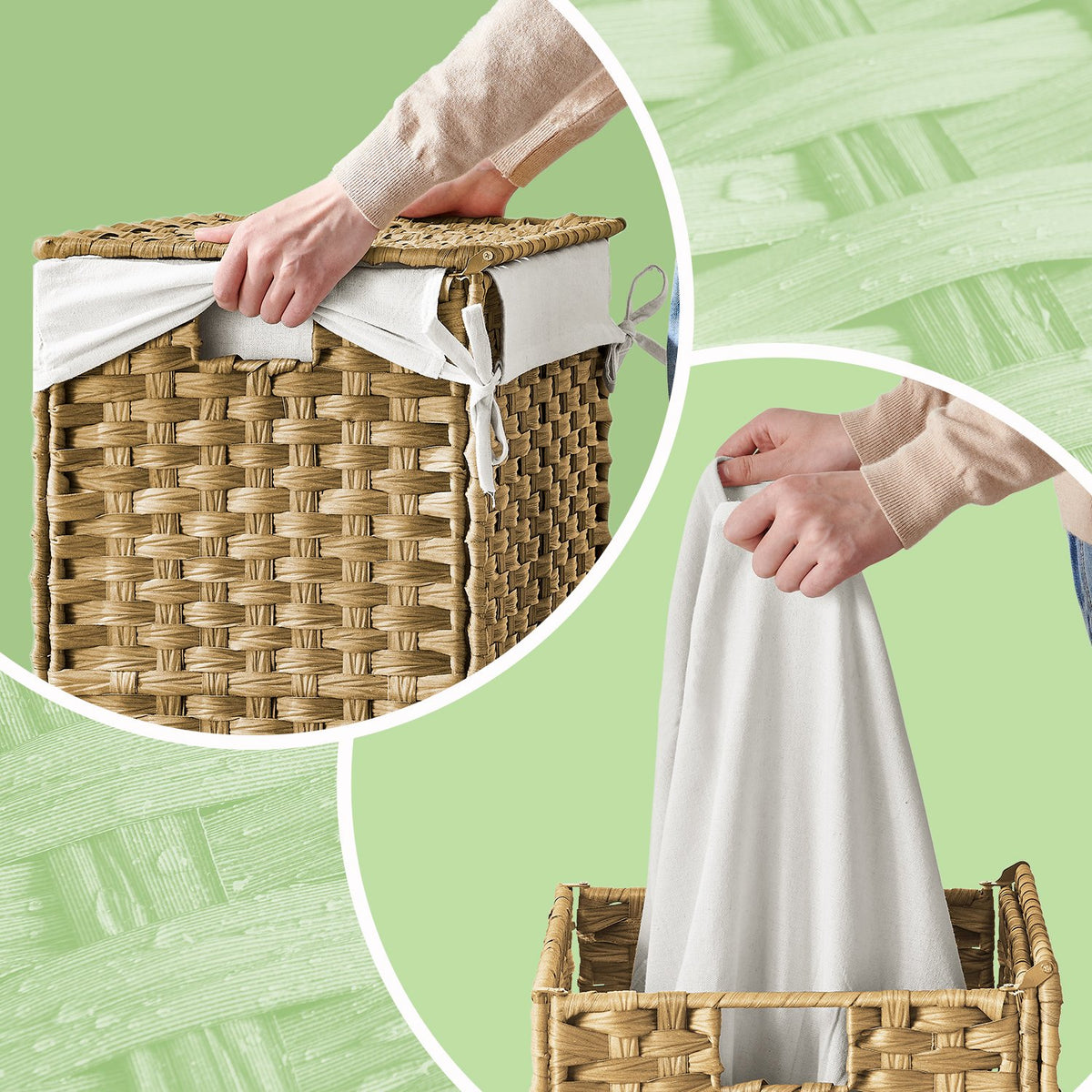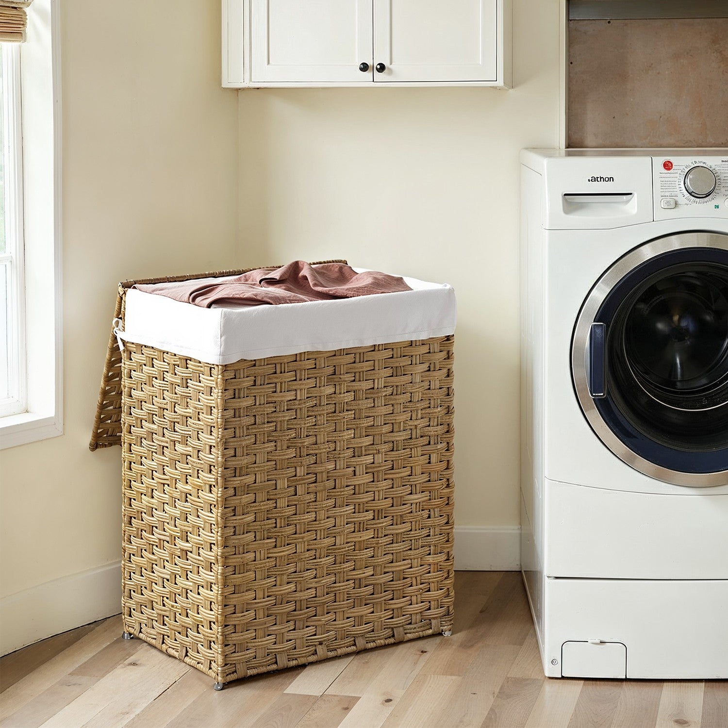 Smalle wasmand, wasverzamelmand, met deksel en handgrepen 46 x 33 x 60 cm