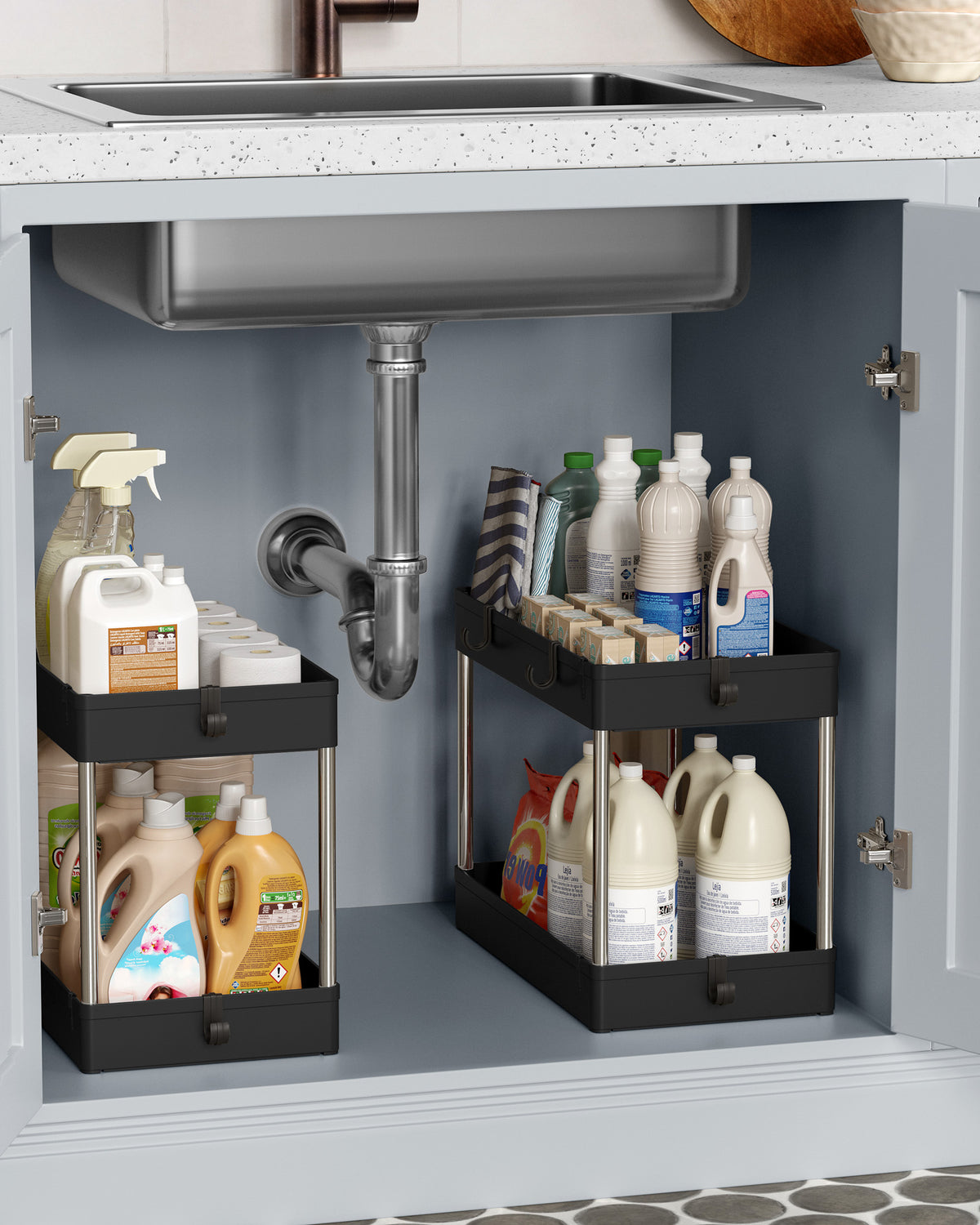 Spoelbakkast organizer 2 niveaus zwart 22 x 40 x 31 cm