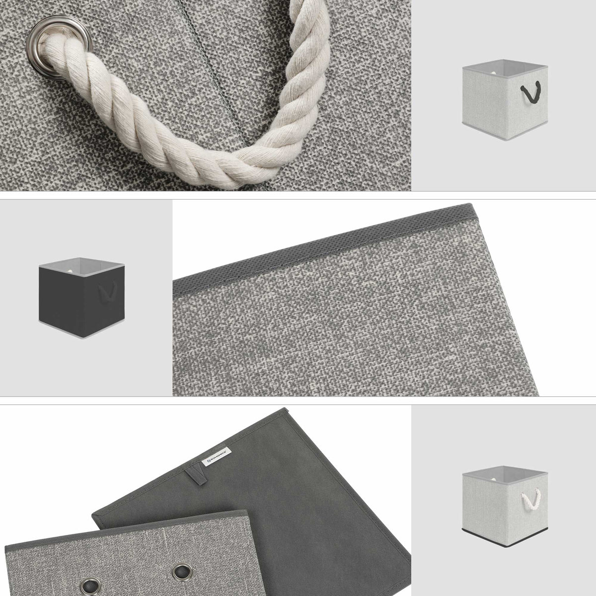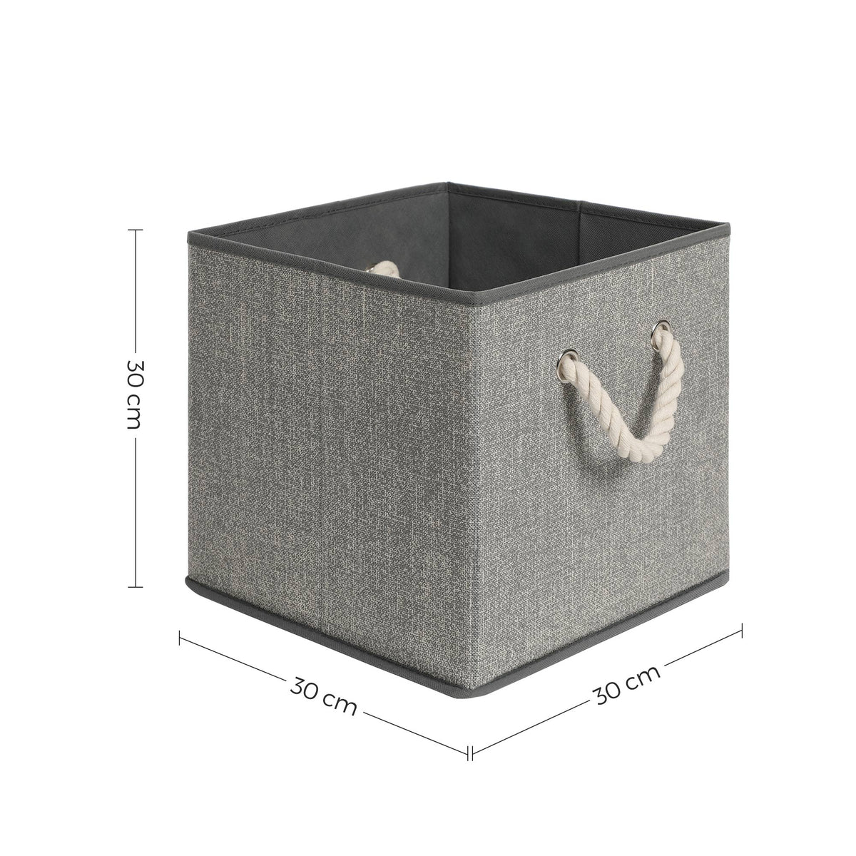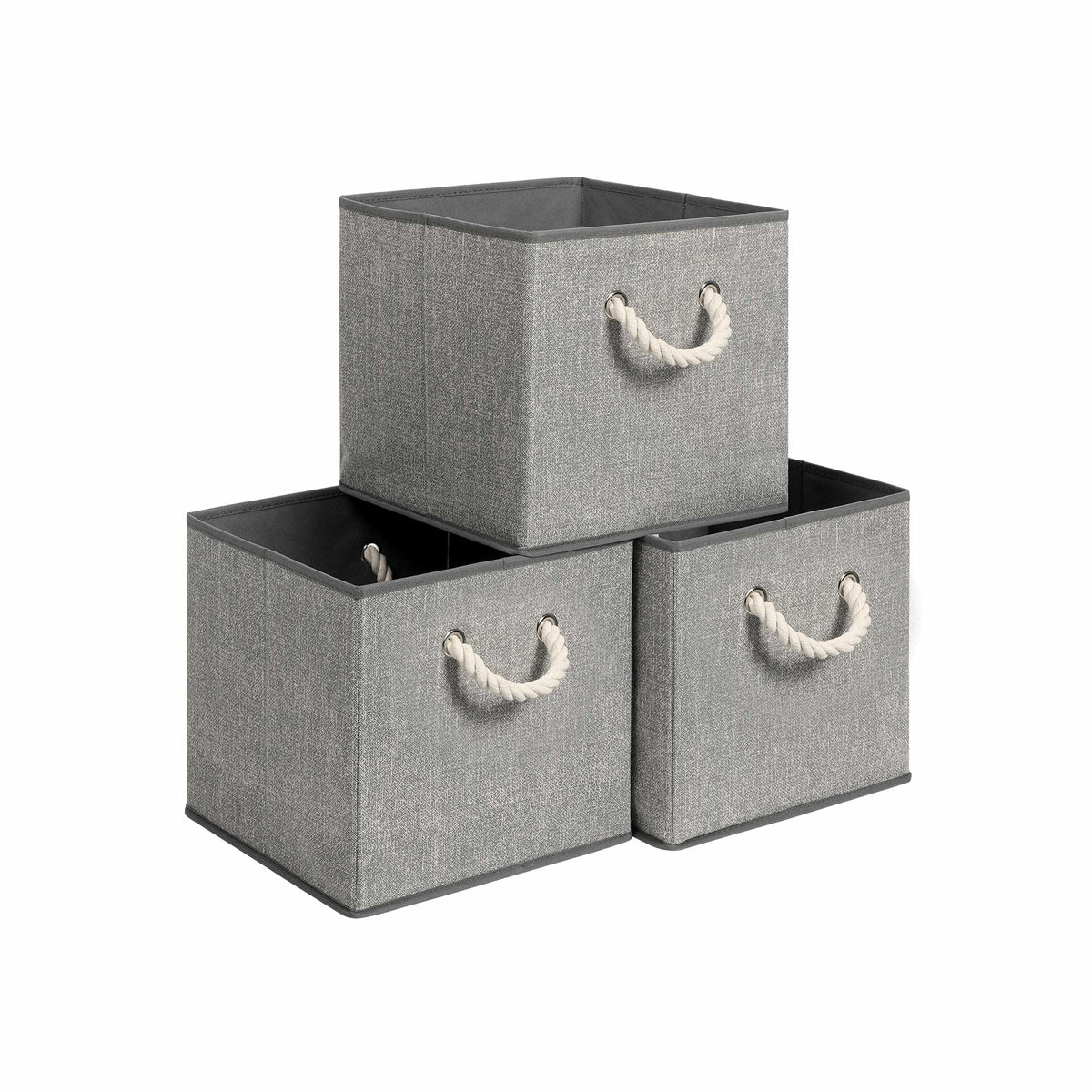 Stoffen dozen zonder deksel, set van 3, grijs 30 x 30 x 30 cm
