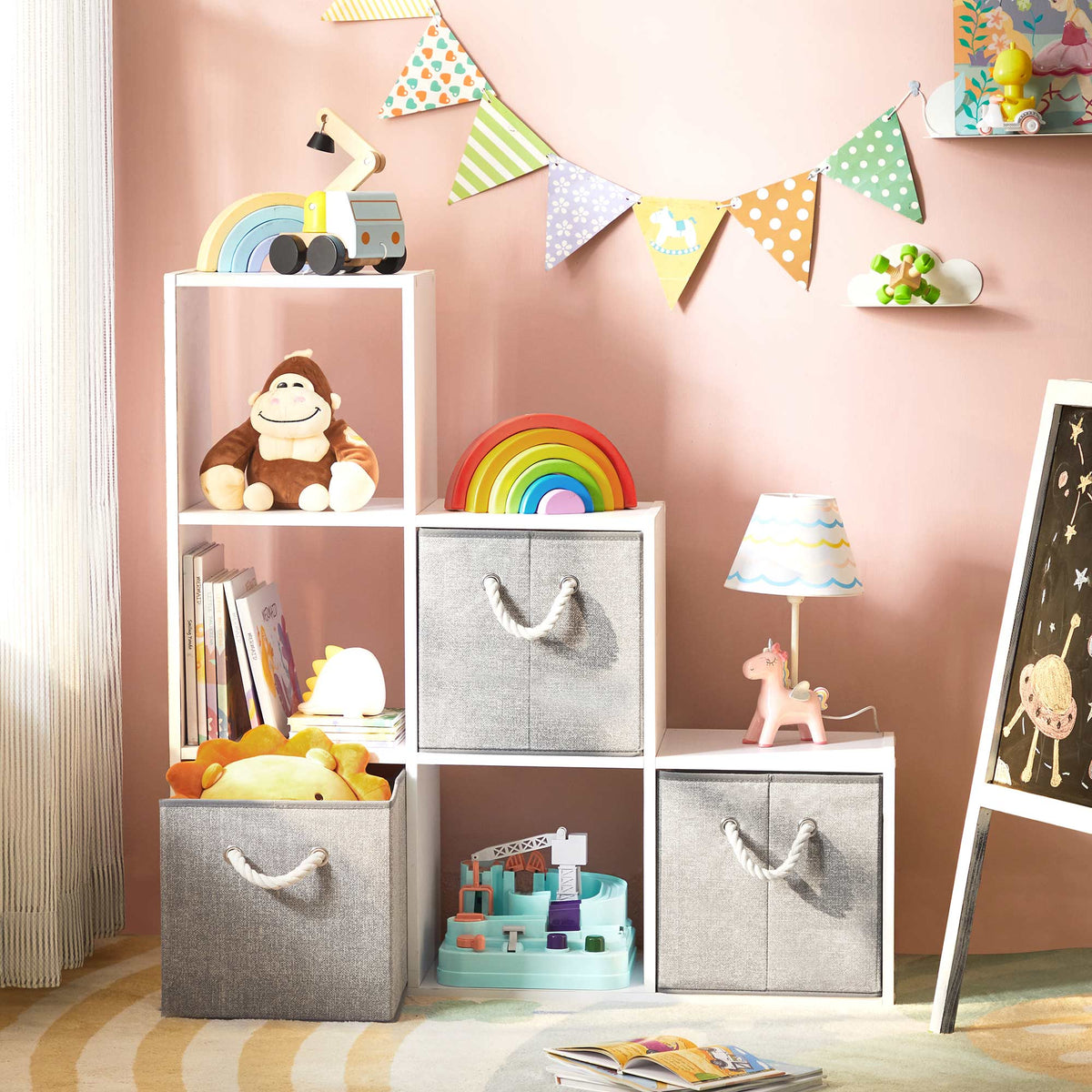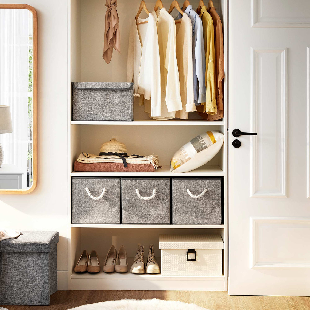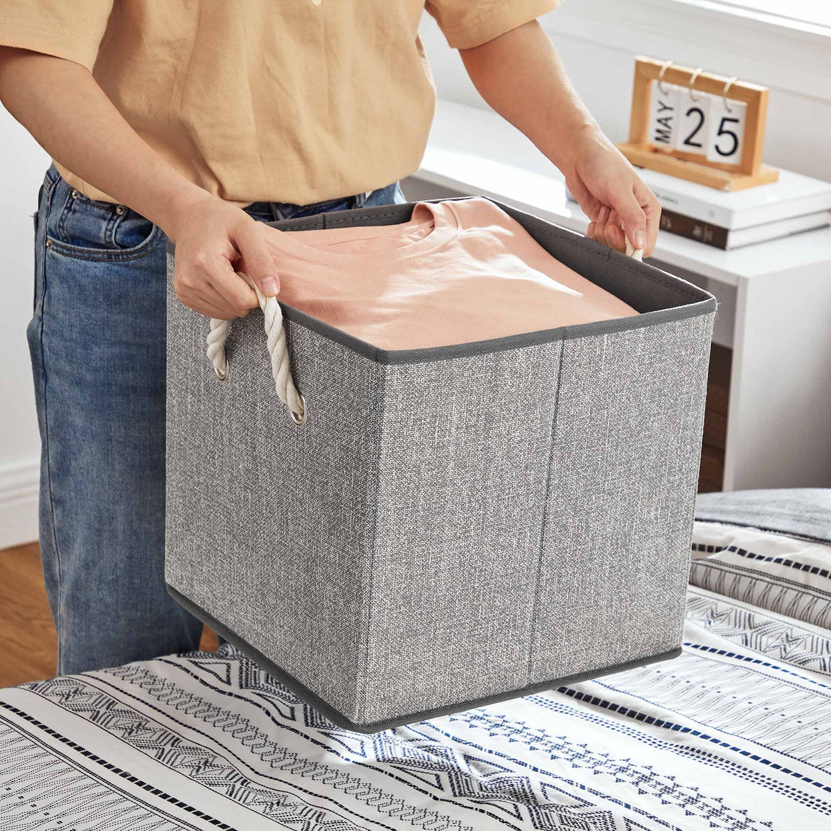 Stoffen dozen zonder deksel, set van 3, grijs 30 x 30 x 30 cm